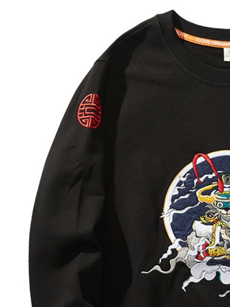 这款时尚大气的一款圆领卫衣,衣身的前幅采用绣花的麋鹿装饰,与圣诞的节日氛围符合,显得时尚又有活力,搭配钉珠装饰的字母显得立体精致,凹出个性酷炫的潮流感。