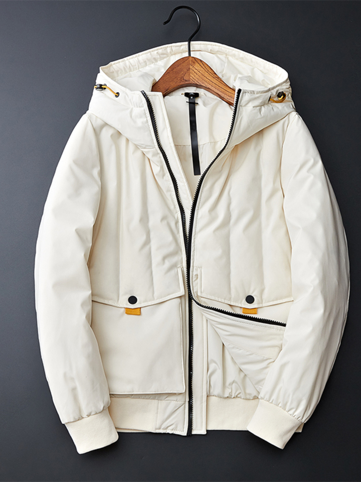 宽松的碱性羽绒服,廓形饱满上身有范儿。优质白鸭绒填充,温暖加倍,极具潮味。