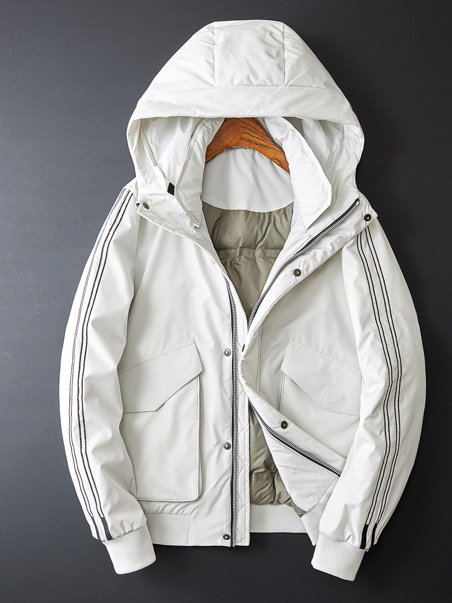 白鹅绒的填充温暖着你,翻领羽绒服,90%白鸭绒高含绒量,保暖性好!原生材质,轻盈蓬松,不显厚重,体型都能穿出时尚美!