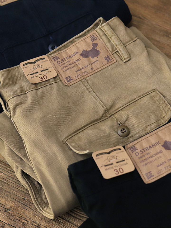 工装裤,这个100多年前的流行单品,在历经了一段时间的消沉期后在近些年又开始卷土重来,再次成为了潮人们人手必败的潮流单品,n这款休闲工装裤采用立体裁剪的方式搭配宽松直筒的裤型设计,营造出挺拔硬朗的上身效果,并延续工装裤的多袋设定,提升穿着实用性。