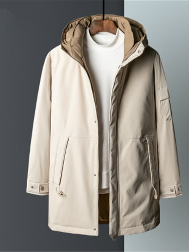 中长款的版型修饰身形,经典版型设计,潮流时尚,宽松版型,穿着帅气有型保暖效果好。搭配一条九分西裤,彰显男人味。