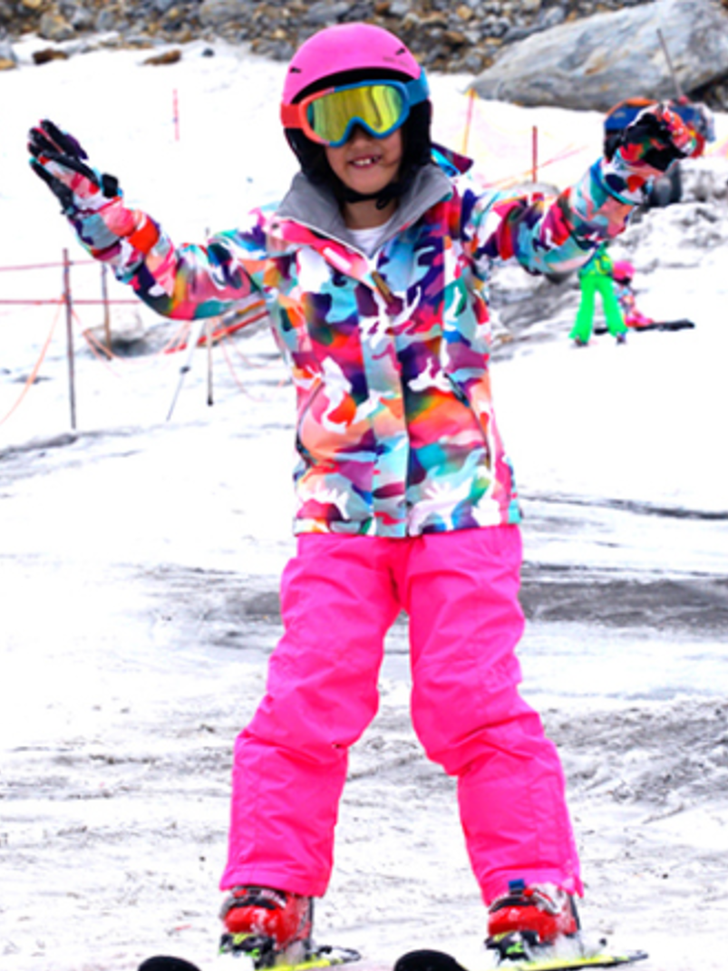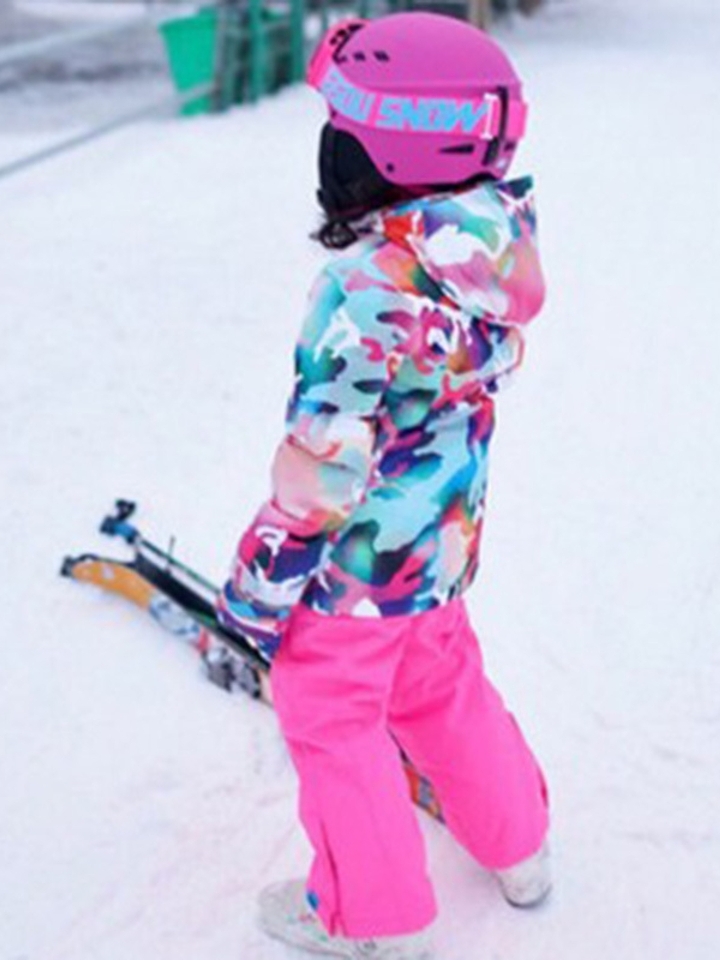 儿童滑雪服套装,以亮丽水彩带来时尚醒目视觉体验,搭配纯色长裤,清新简约又不显单调;外层耐磨面料防风防水,搭配腋下透气拉链窗,穿着持久舒爽;开襟YKK拉链做工精致细腻,顺滑耐用