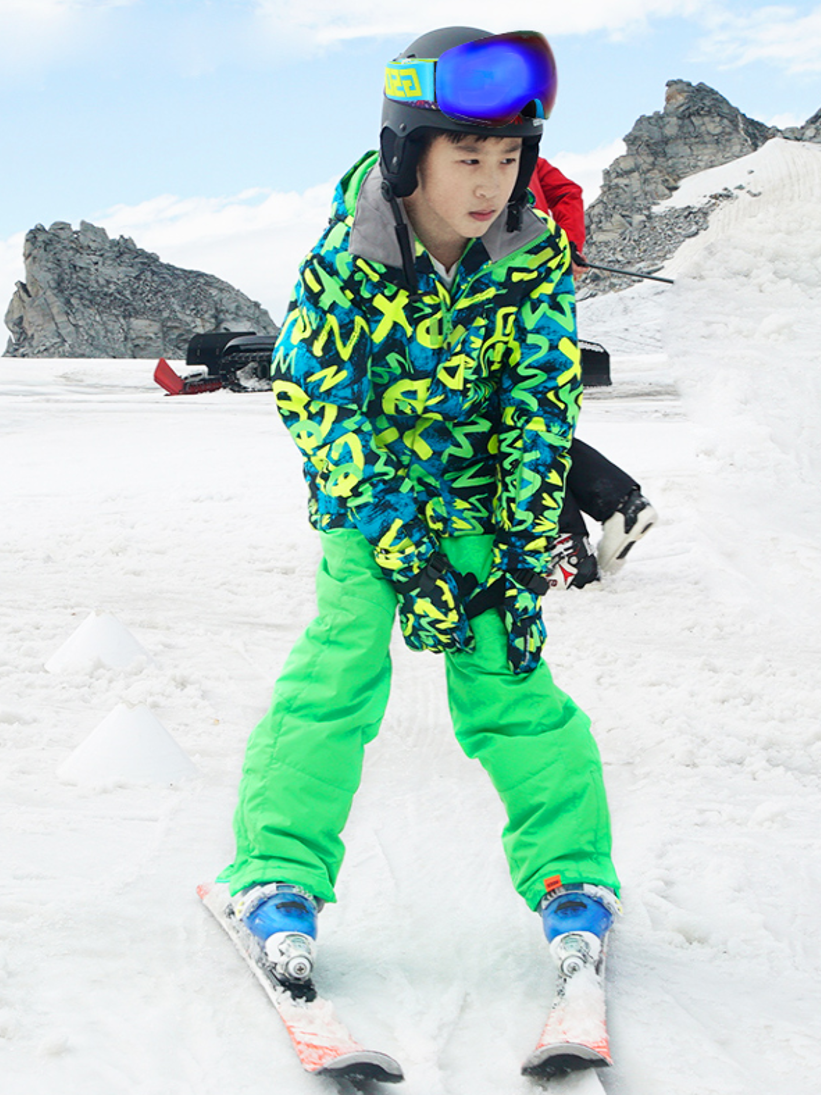 该款滑雪服以充满童趣的涂鸦印花为亮点,旨在展现孩子天真无邪的个性,并精选科技面料,集防风防水、透气耐磨等特点为一体,保障穿着舒爽无闷热感;连体衣帽+抓绒高领设计,不仅增强整体美观性,更加保暖抗寒