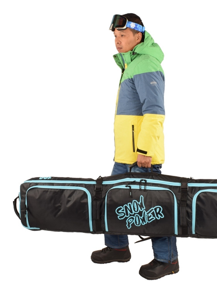 采用优质耐磨透气面料制作,结实柔韧,防刮抗撕,防水PE里衬有效保持包内物品干燥洁净,避免潮湿;大容量主包+多个侧袋设计,可轻松收纳雪板、雪鞋等滑雪装备,并由金属拉链闭合,牢固安全;底部拖轮抗摔耐压,搭配双肩背带及提手,携带轻松省力。