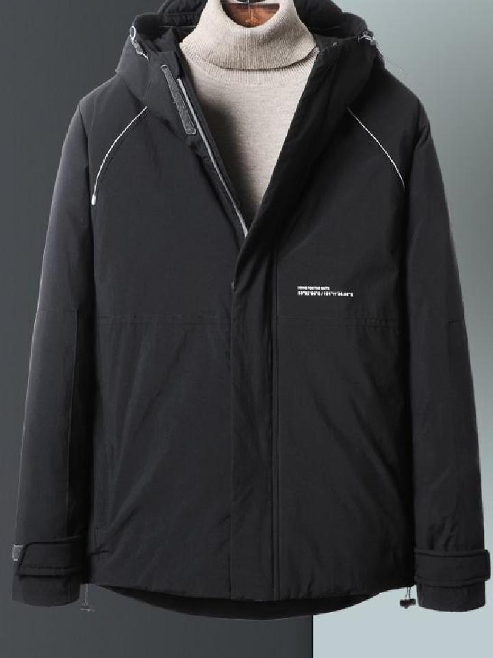 天气寒冷时羽绒服外套也是必不可少了,保暖又时尚的羽绒服简直是冬季必备。中领的针织衫与羽绒服的搭配看起来非常保暖又好看,紧身裤的搭配恰到好处,整体看起来显瘦不臃肿,非常适合职场男士。