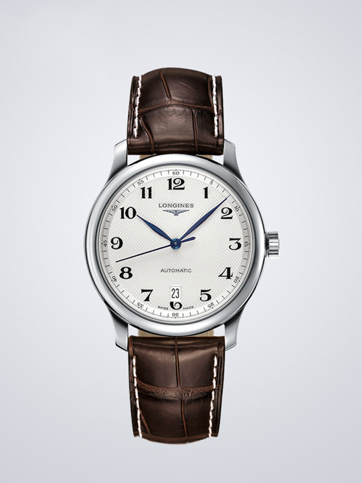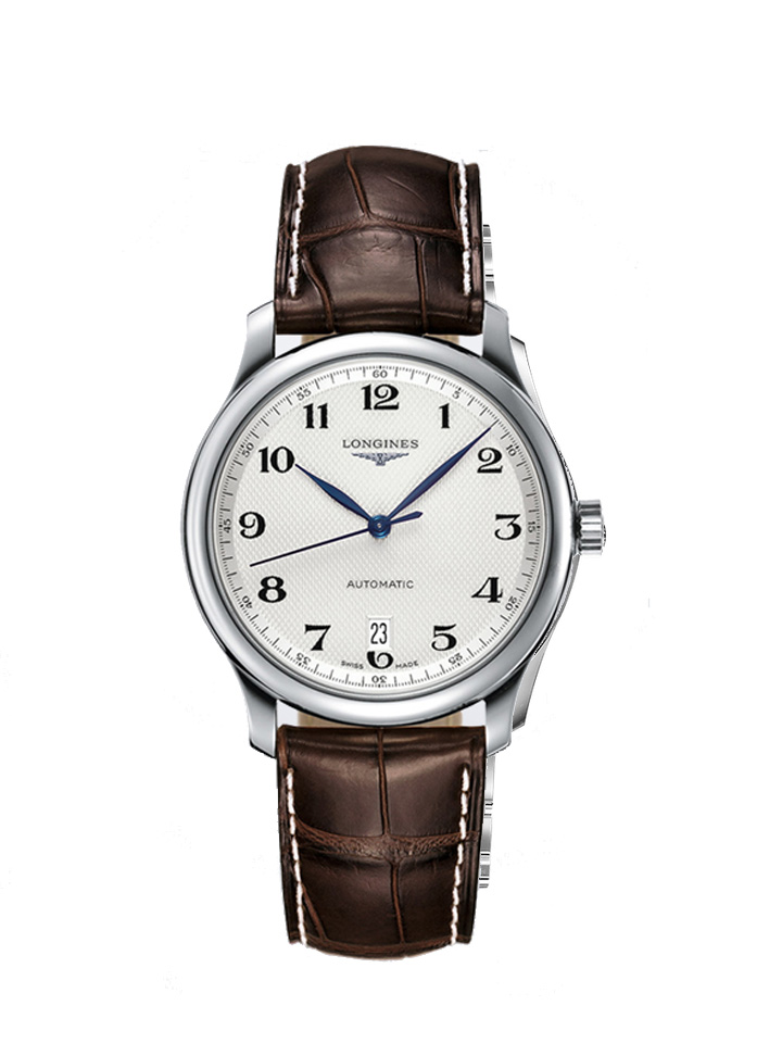 采用机械机芯,银色麦粒饰纹表盘搭配俊朗蓝钢指针,展现非凡个性魅力,鳄鱼皮表带搭配蝴蝶双按扣,易佩戴易取下,抗磨损蓝宝石水晶镜面,高贵优雅,整体制作精密,契合超强防水性,是商务人士之首选。