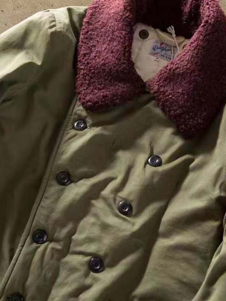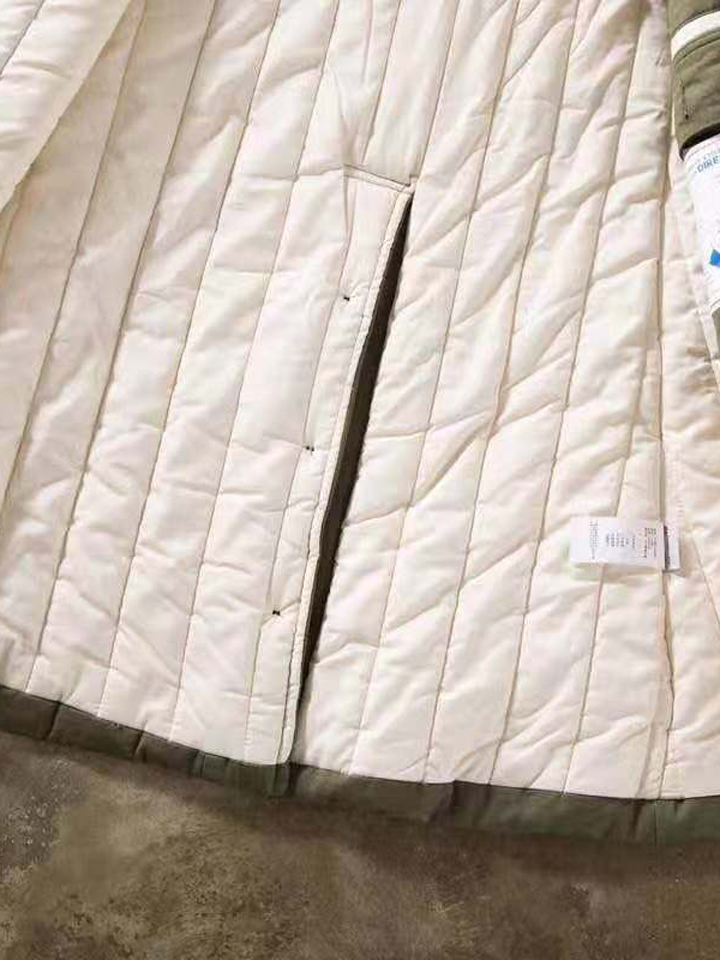 双排扣门襟的处理,加持军绿色调的运用,尽显军旅风范。加上撞色毛领的设计,上身更为保暖舒适,且不失时尚感。内里加绒加厚处理,给你在冬日里更温暖的呵护。