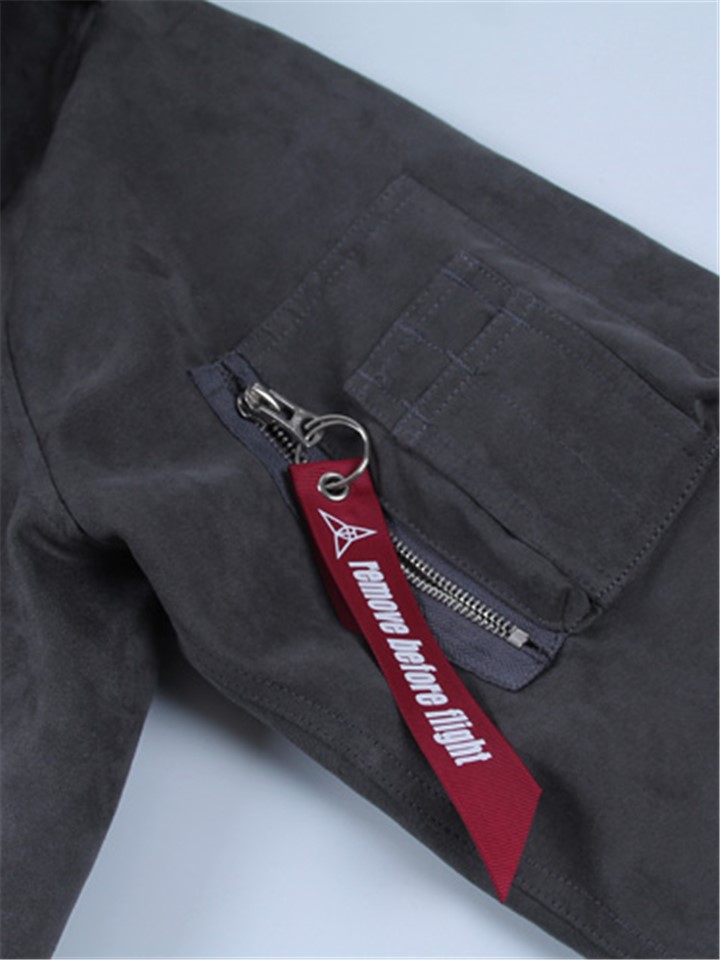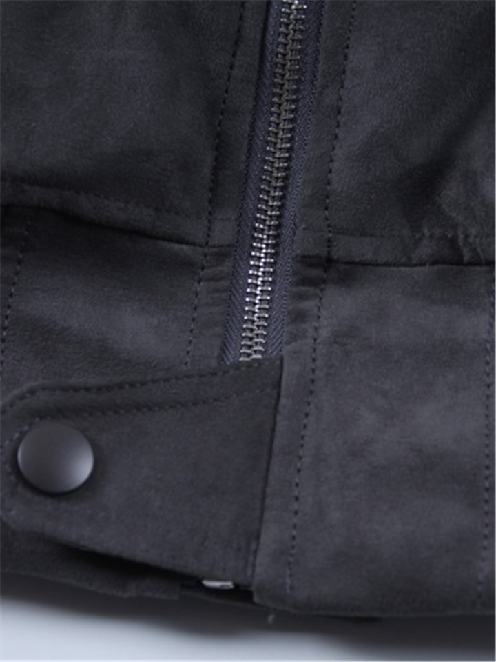西装领设计,男人味十足,飞行服版型,时尚感十足,短款版型,拉长身材比例,经典夹克版型,帅气有型,麂皮绒材质,舒适又保暖。