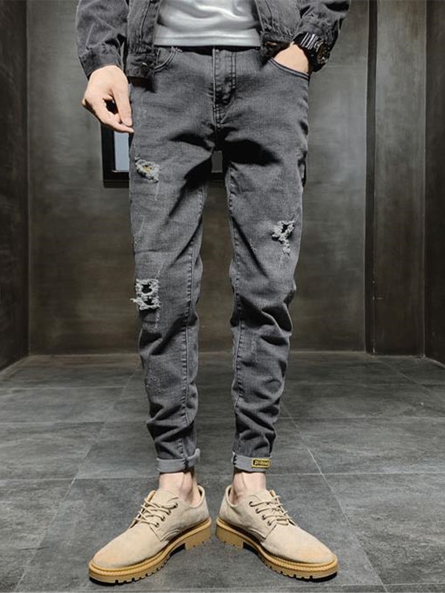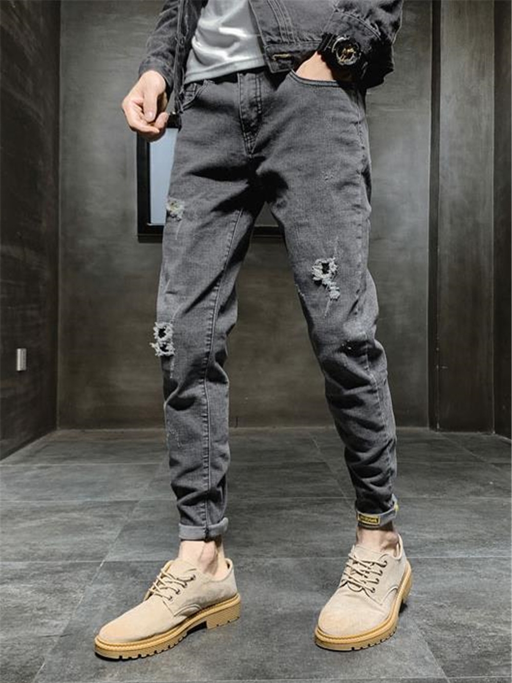 修身的剪裁,走线整齐,上身效果舒适有型,塑造利落线条。简约大气的侧袋设计,贴合手型,非常舒适。简约一字型口袋,修饰臀部线条,丰富视觉美感。破洞设计,个性十足。