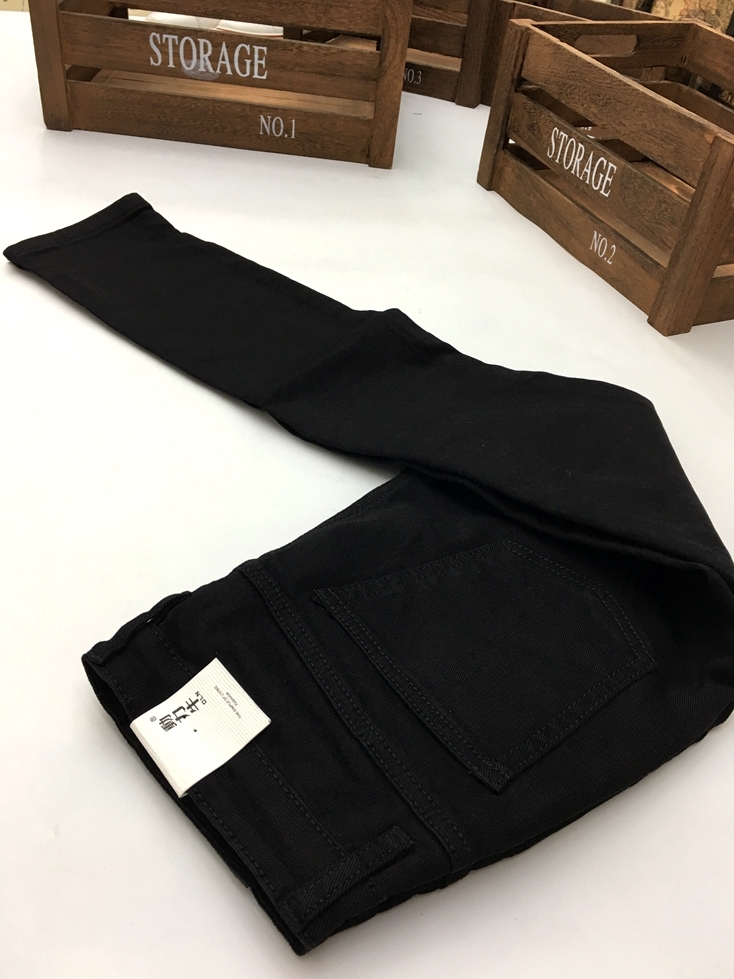 采用微弹的牛仔布料质感舒适,纯黑色款式上身效果很好很百搭,春夏季随意搭配一件上衣都会显得很时尚有特色。