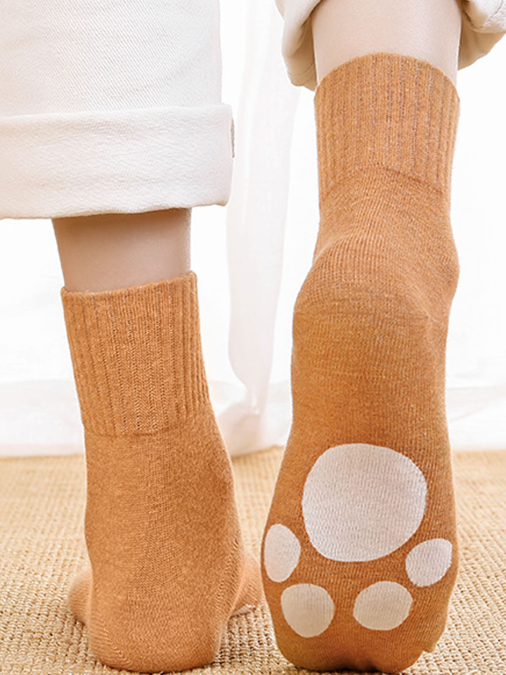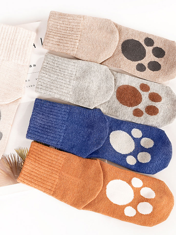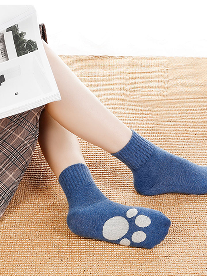 趣味猫爪图案,充满童趣,可爱文艺范十足。左右分明的图案设计,更好区分,避免交叉感染。袜口采用弹性螺纹收缩设计,穿着舒适不勒脚。