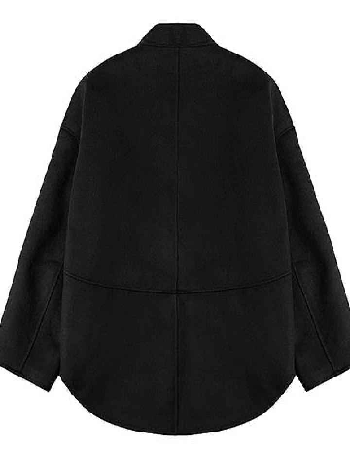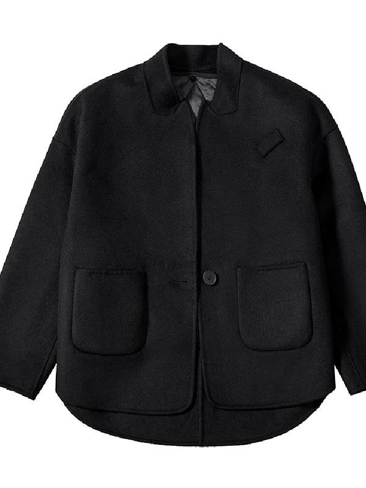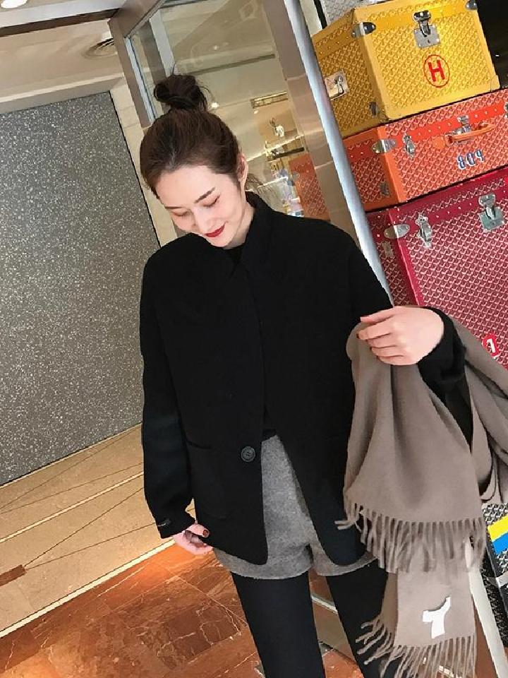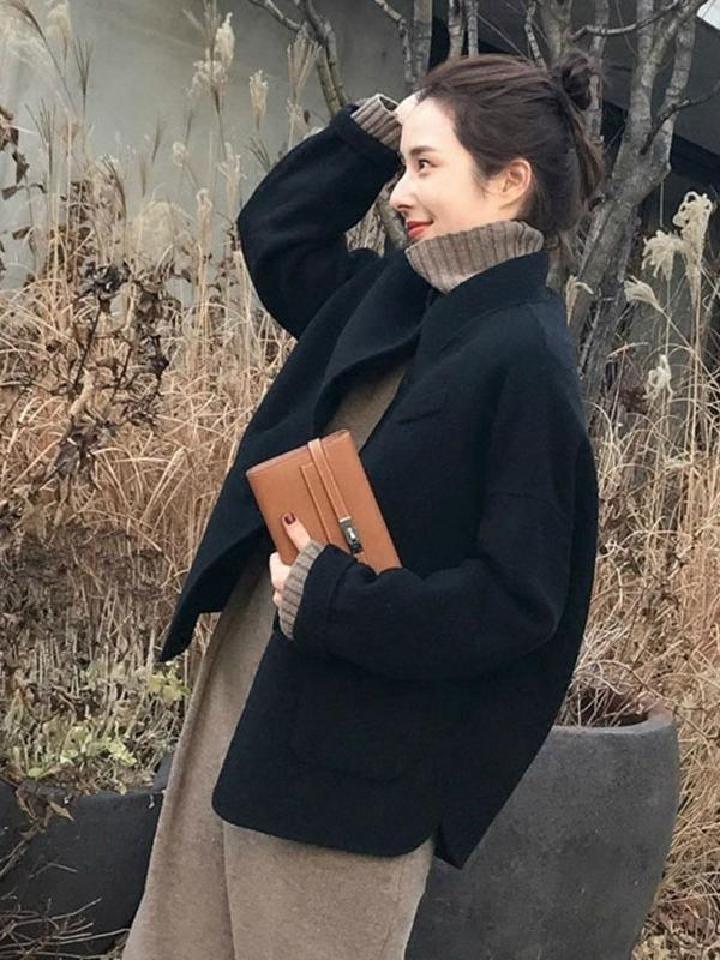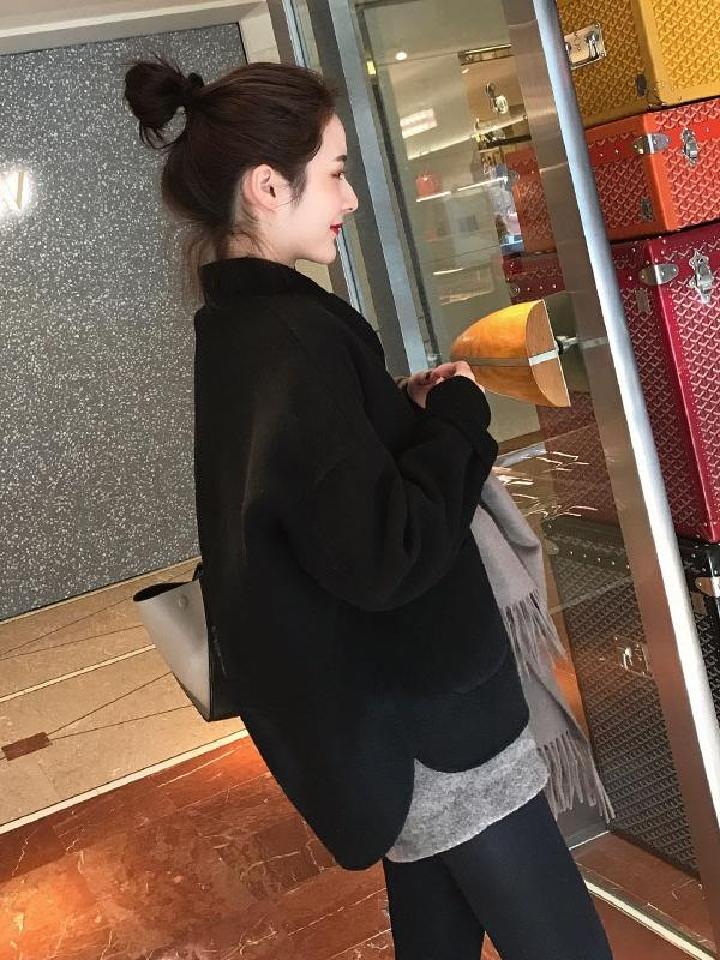 简单大气的一款毛呢外套,采用的双面绒面料,手感细腻,质感极佳,大大的翻领,展露迷人的颈部,优雅气质尽显,宽松的版型,完全没有身材限制,轻松驾驭。