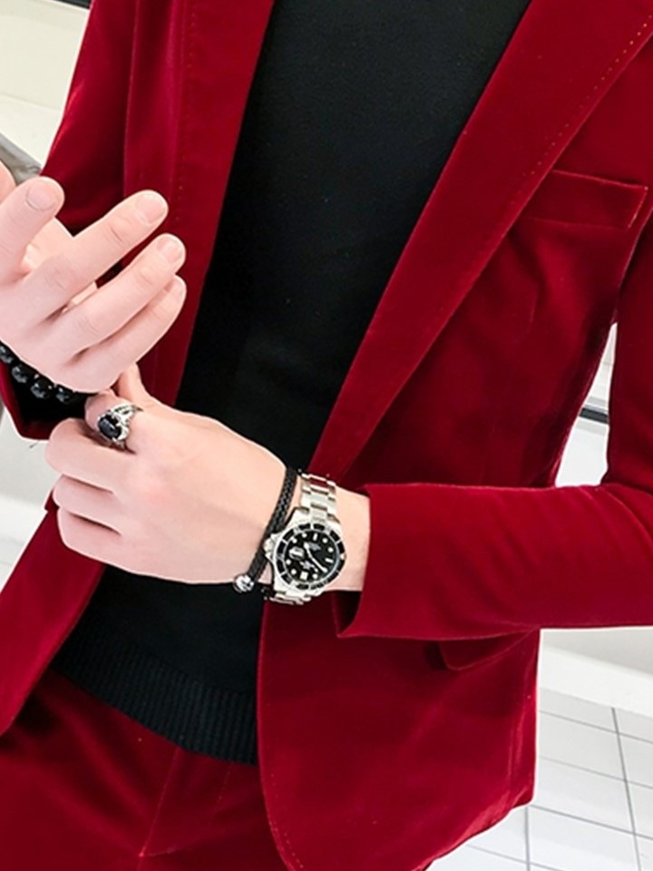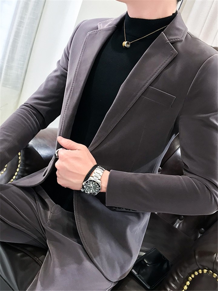 小西装领,修饰颈部线条,修身版型,凸显身材曲线,西装领设计,男人味十足,外套设计,上身挺括有型,时尚潮流,让你彰显个性。