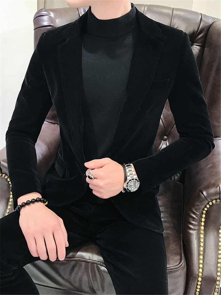 这款西装外套采用了经典的西装版型,搭配上经典大气的黑色,上身效果很好,很有绅士气质。