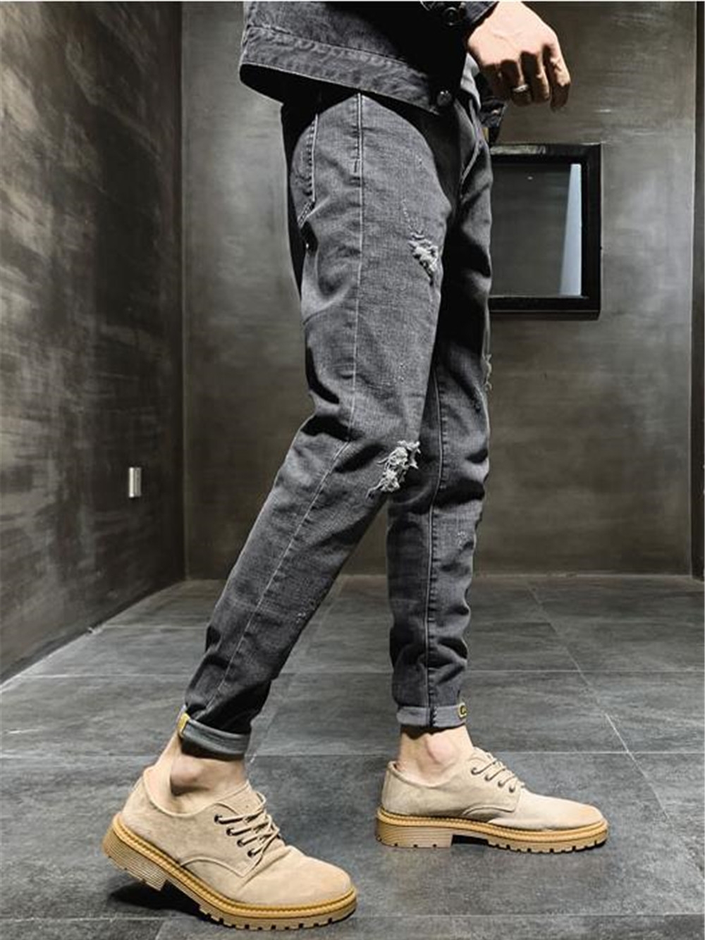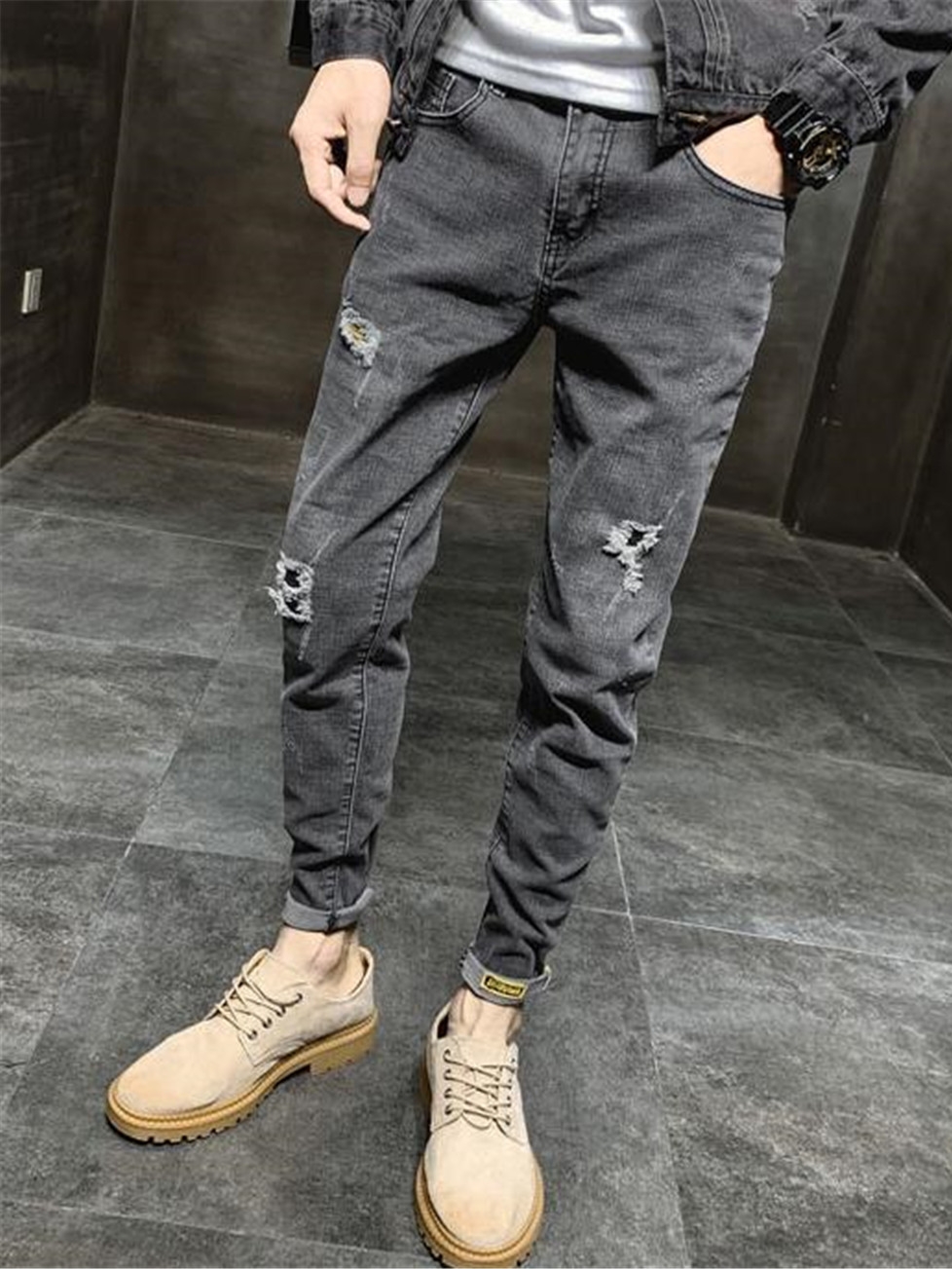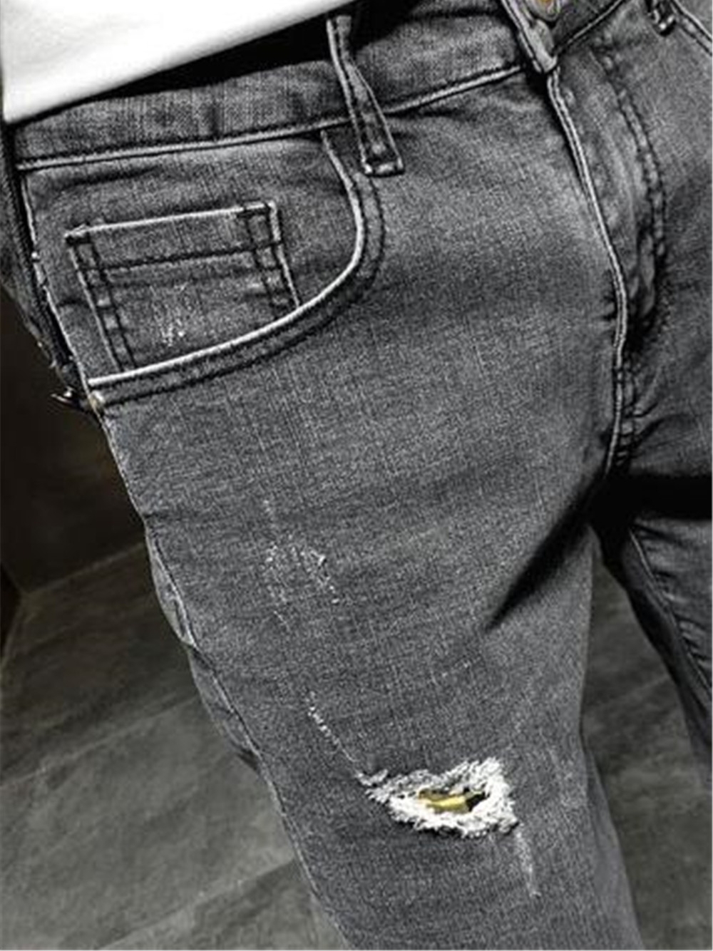 白点破洞设计,显复古古典格调。整齐的裁剪缝纫走线,显层次更时尚大气。经典的直筒,修饰修长笔直长腿曲线。还有小脚的版型,能够将男性的修长腿型勾勒,更显高挑魅力。