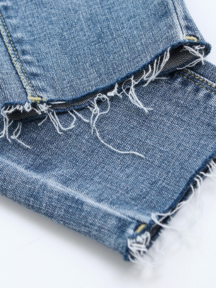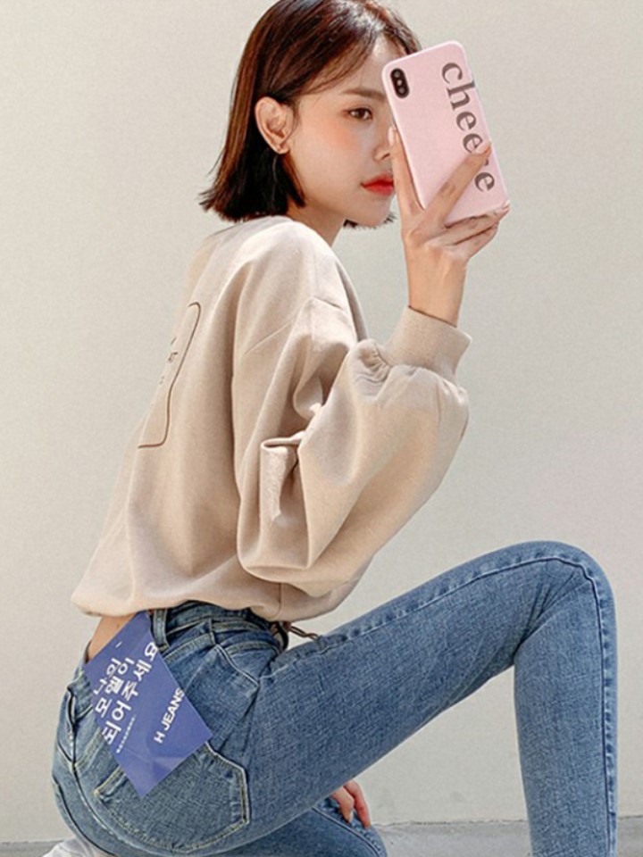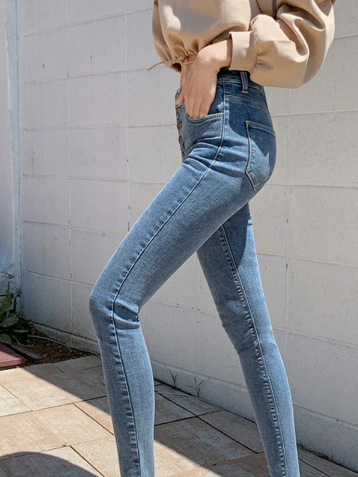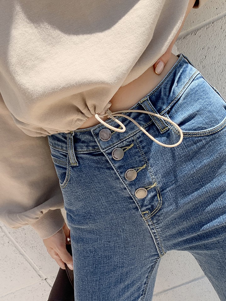 高腰设计,拉长身材比例。高腰牛仔裤,显瘦显腿长。直筒裤型,修饰腿部线条。