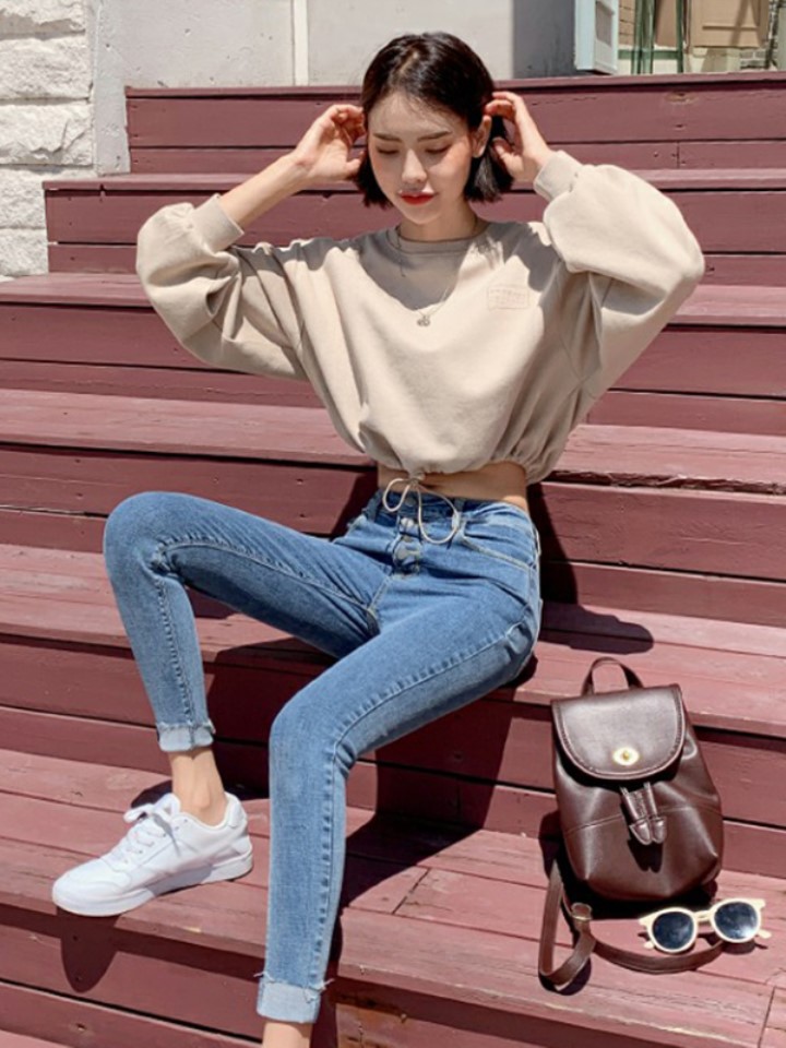 这款牛仔裤的设计很有特色,高腰的版型,很好的修饰了身材比例,显瘦效果很棒,搭配一件T恤,就能轻松穿出时尚感。