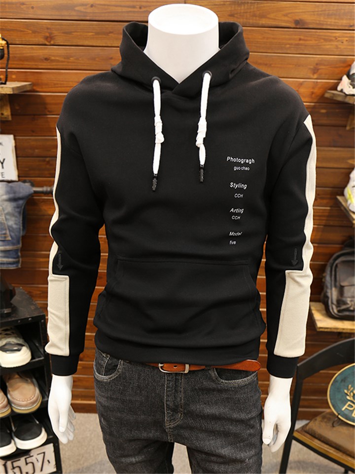 胸前字母印花,个性时尚,连帽的卫衣,休闲感十足,休闲连帽卫衣,时尚百搭,连帽设计,彰显绅士风度,连帽设计,彰显男士魅力,连帽的设计,休闲又帅气,修身版型,展现男性魅力,撞色拼接设计,个性时尚。