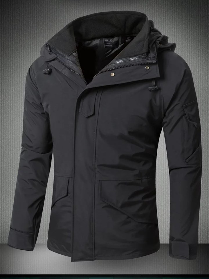 这款冲锋衣采用防水面料,防水防刮,具有良好的防水性能,有效防止雨水渗入,提高穿着舒适度;立体剪裁,修身版型,穿着舒适,防风保暖;可拆卸内胆,可根据不同的需求进行调节,满足不同需求。