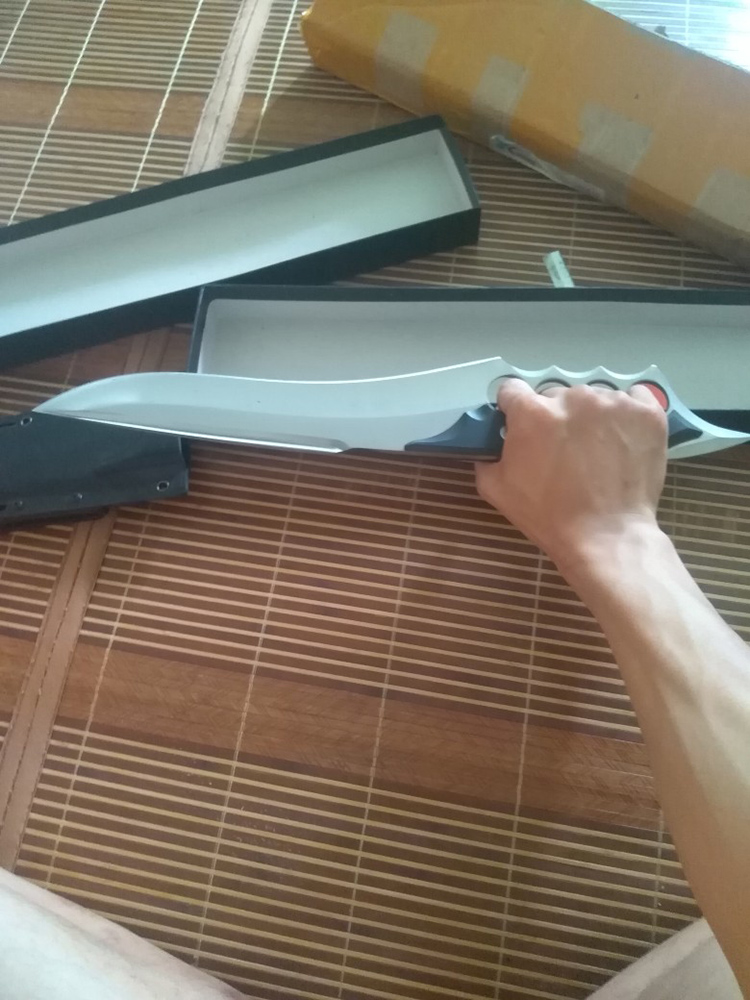 这种滚花手柄甚至成为后来甩棍模仿的对象,用上K鞘后,确实更有战术感觉了,还多给护刀油布与磨刀石,不过吧有些不会玩的容易把刀磨得狗啃的一样。