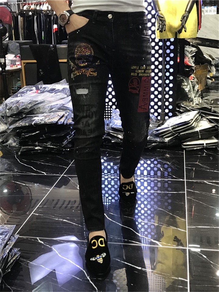 宽松裤型,穿着舒适自在,烫钻工艺,彰显品牌魅力,个性破洞设计,时尚潮流,破洞设计,增加裤子亮点,多种款式,满足不同需求,宽松裤,穿着舒适不紧绷,牛仔面料,彰显绅士风度,网布材质,穿着舒适透气。