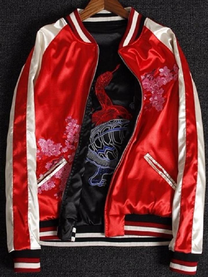 时髦有型的棒球夹克服,打造出man力十足的男子汉气场,看起来潮范难挡。经典棒球服领,修饰男性性感的颈部。立体印花装饰,凸显出男性的潮酷魅力,颇具街头感。