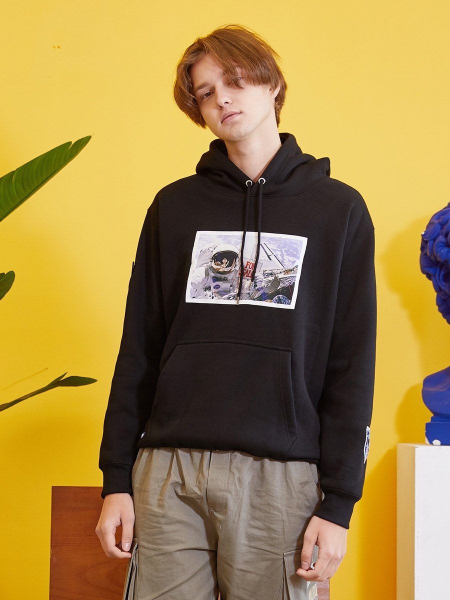 个性十足的印花连帽卫衣凸显出满满的时尚感,简约的卫衣版型更加的时尚大方,搭配宽松的版型设计,凸显出满满的慵懒范。