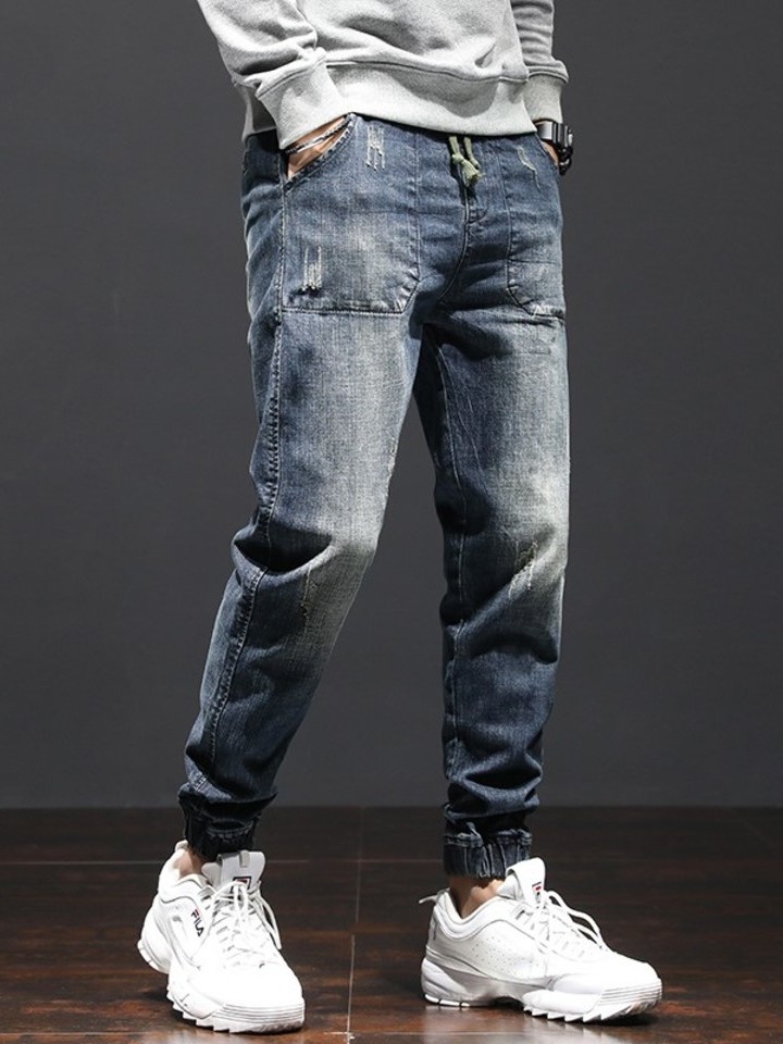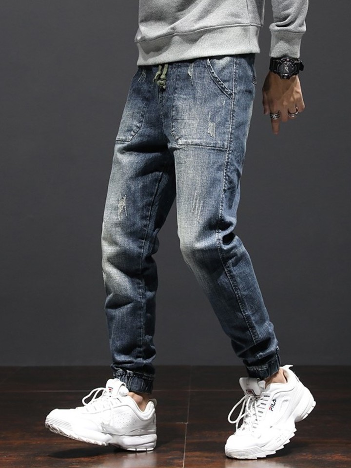 牛仔长裤一直都出现在男士生活圈里。此款牛仔裤独特的版型裁剪,凸显男士好身材。如果是去出门逛街或是下班和朋友小酌一杯,穿着牛仔裤搭配帅气老爹鞋的造型不会出错。