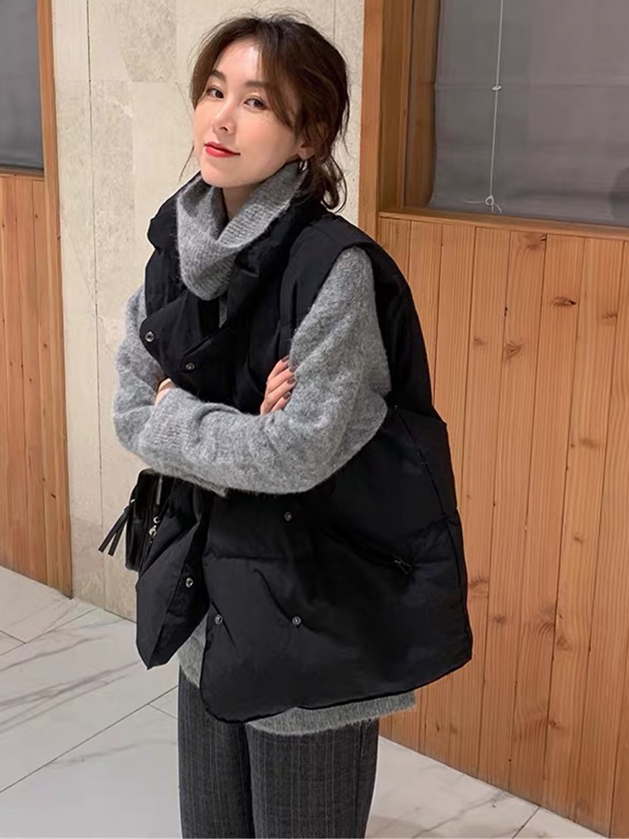 黑色的色调,经典又百搭,马甲款式,穿着帅气有型,立领设计,凸显男士魅力,立领设计,修饰脖颈曲线,立领设计,修饰颈部线条,三件款式,简约时尚百搭。