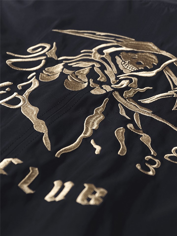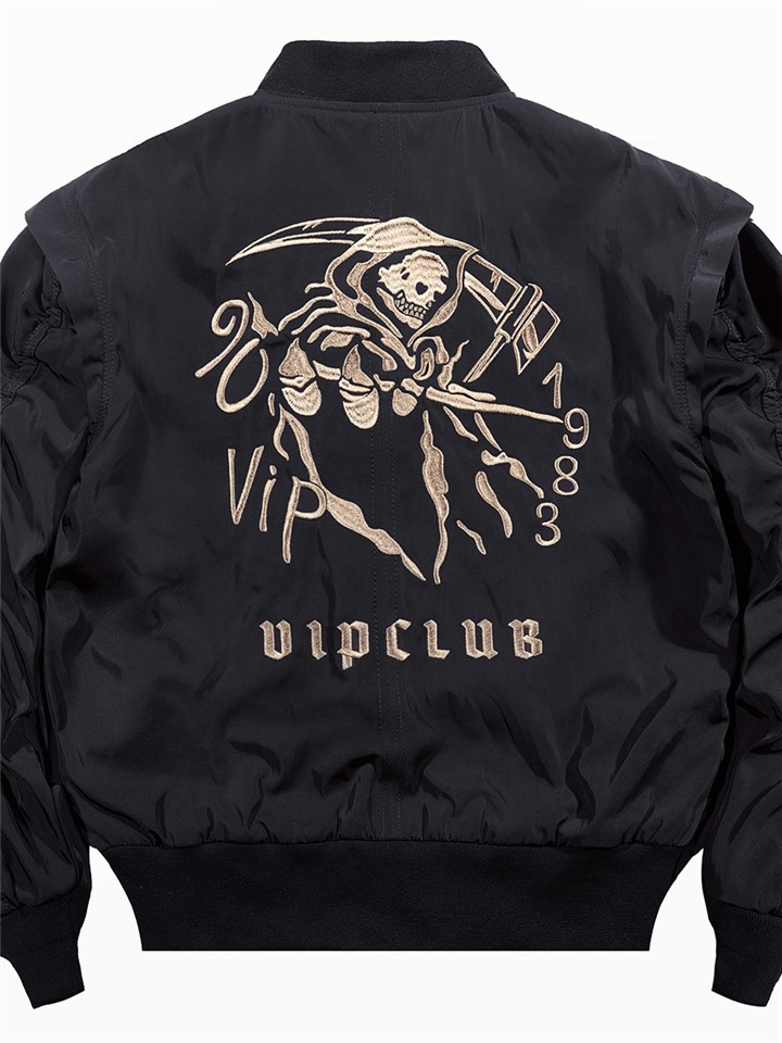 这款夹克采用了优质的面料,手感柔软舒适,穿着亲肤透气,经典的棒球领设计,凸显出男士的干练气质,胸前的刺绣图案,彰显个性,宽松的版型,上身很有范。