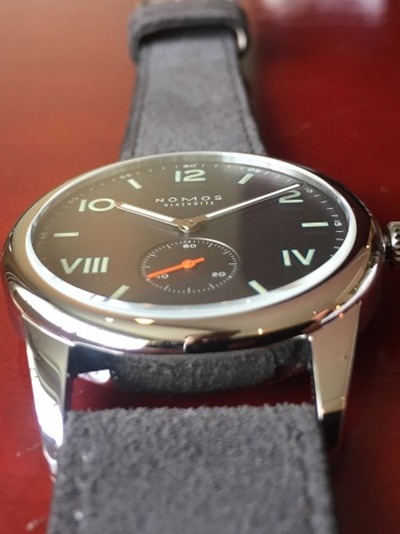 这是一款非常有范儿的极简腕表,12点钟方向是品牌的标志,精致机芯结合了洗练的表盘设计,让你带出feel,带出时尚感。螺旋形直入式表冠做工精细,浮雕刻有NOMO标识,让你的手表品牌更明显。手表采用了舒适手感的表带,让你佩戴起来感觉更好。