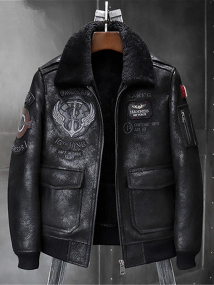 一款真皮刺绣夹克,面料选用皮毛一体设计,更加有质感和保暖的效果。宽松版型,不挑身材,穿出时尚和慵懒范。平时出街简单搭配就很好,随性又自在。