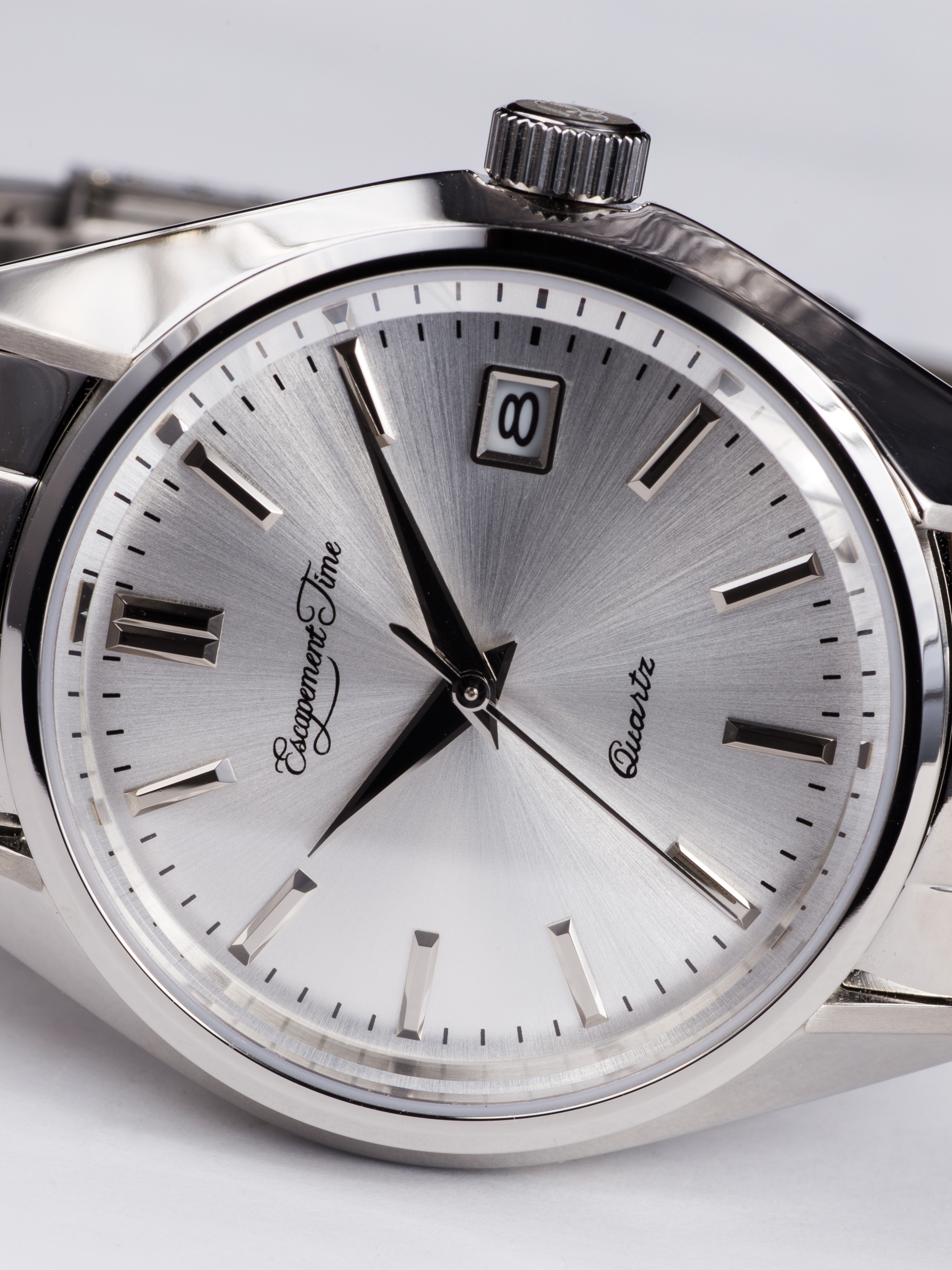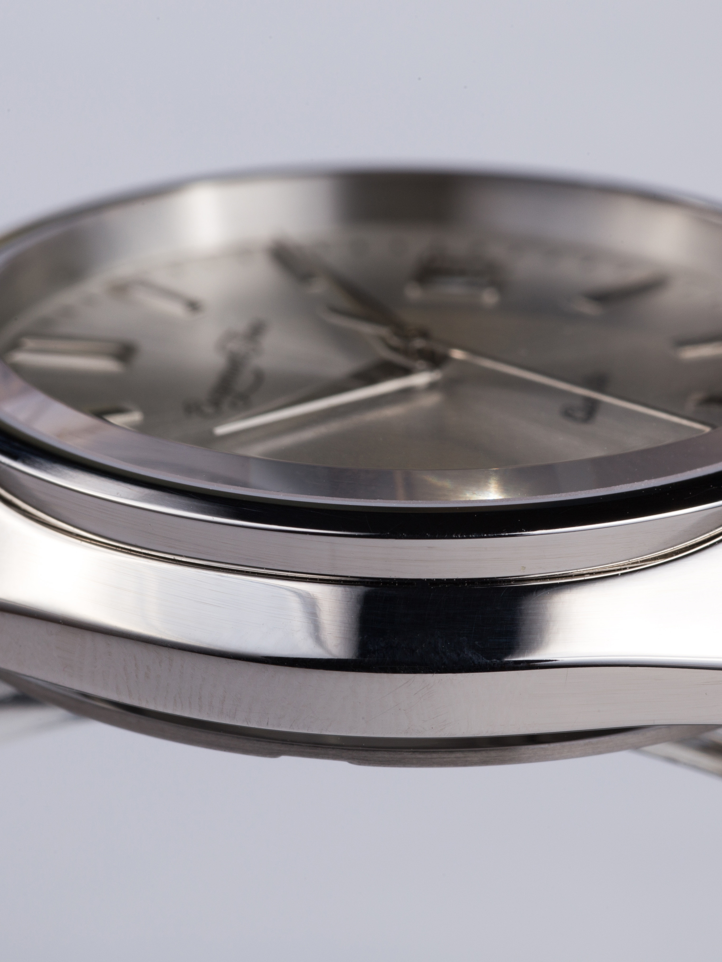 深灰色表盘设计简洁,真皮表带佩戴舒适,优雅中不乏英朗,更适合男性佩戴。