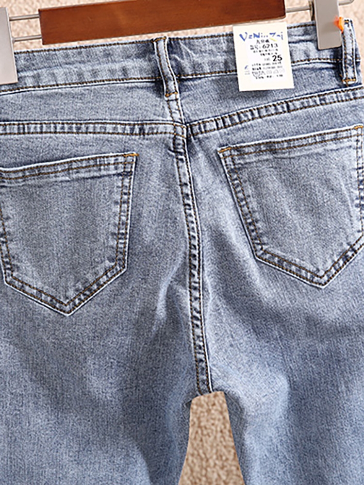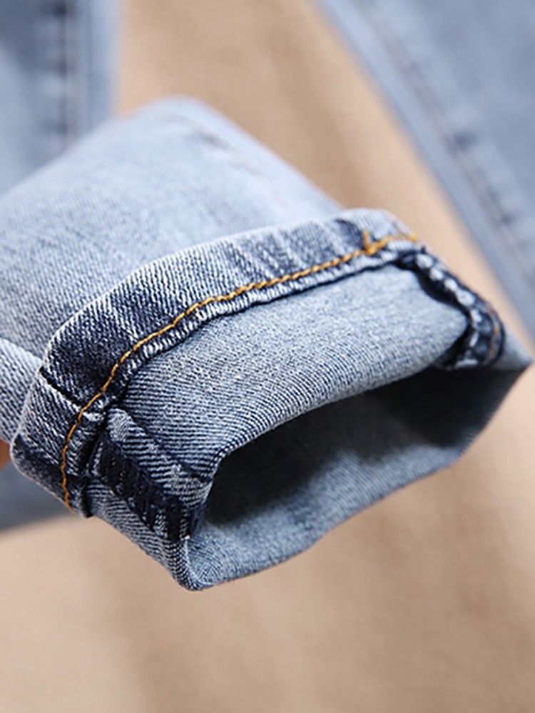 全棉牛仔布的材质,才是亲肤的。牛仔裤,包的特别紧致的款,小脚的裤型十分修身,将腿部线条拉长,搭配宽松上衣,优雅又慵懒~