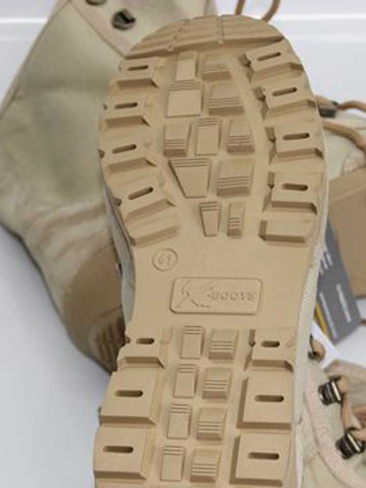 靴面采用沙色优质皮绒材料与高克重沙色纯棉帆布拼块,兼顾强度与透气。鞋底耐用增强型橡胶,防滑耐用。