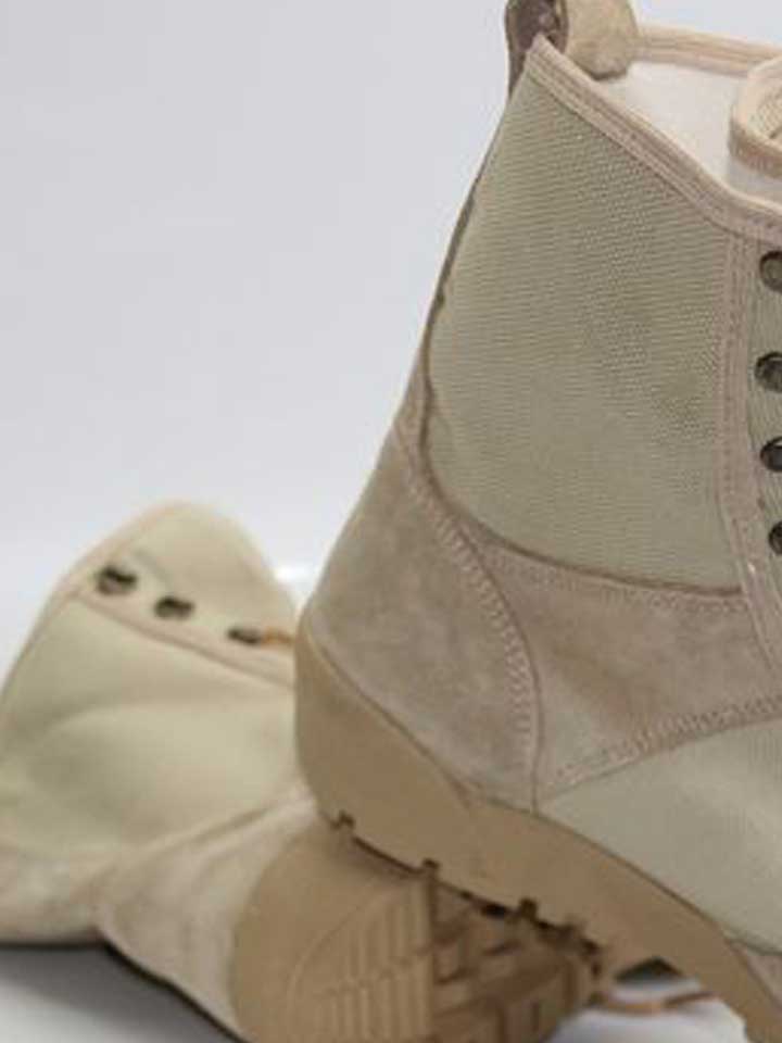 眼镜蛇沙色帆布作战靴,色调文艺低调,彰显复古风。利落的剪裁,彰显男性魅力。