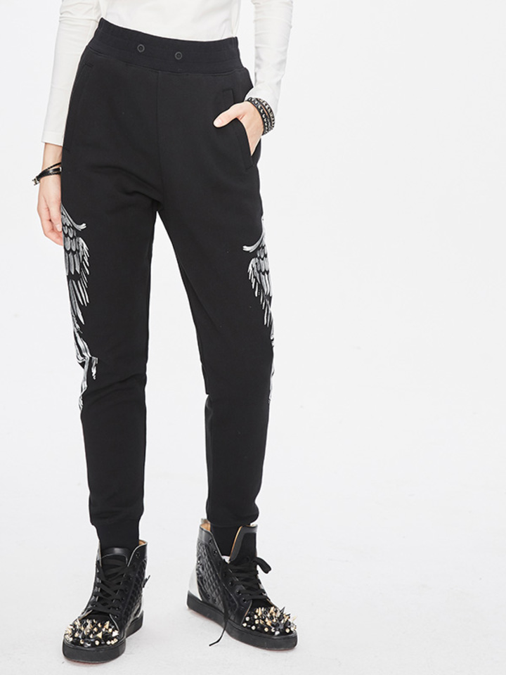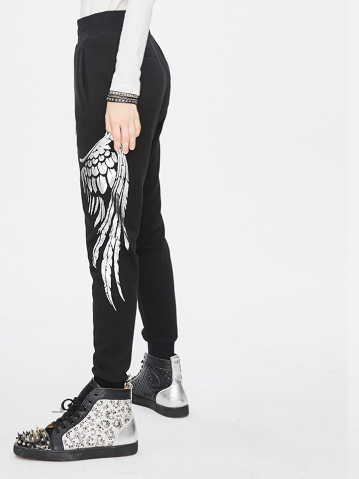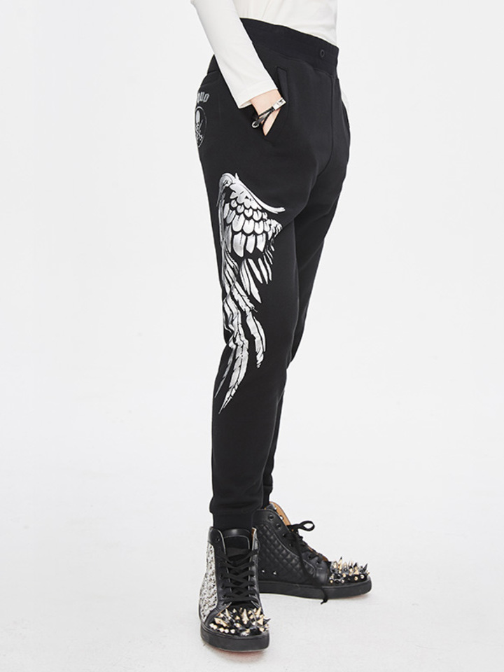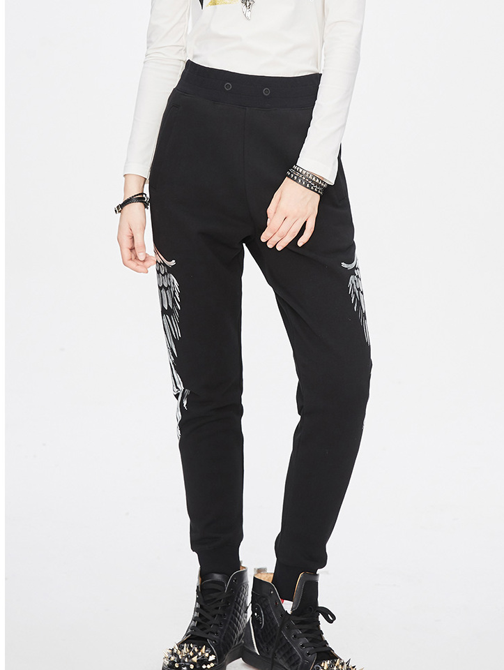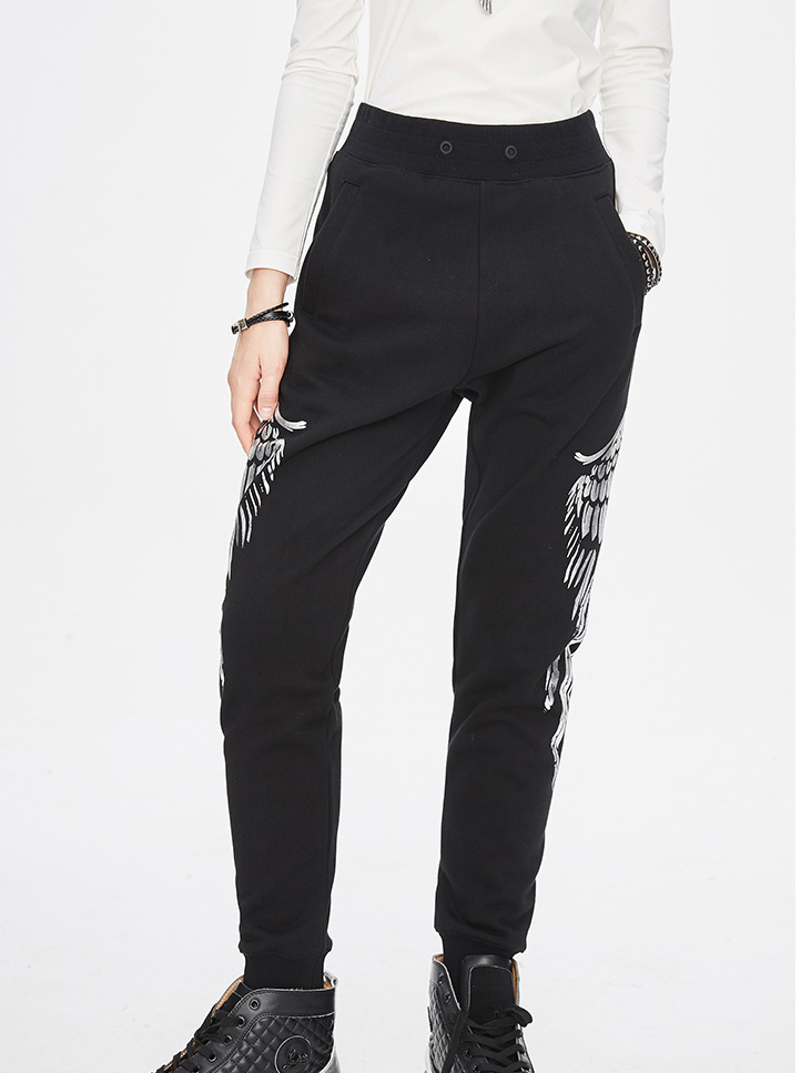 时尚帅气的休闲长裤显出魅力的风采,个性的宽松设计更显瘦,两侧翅膀印花,吸睛度强。