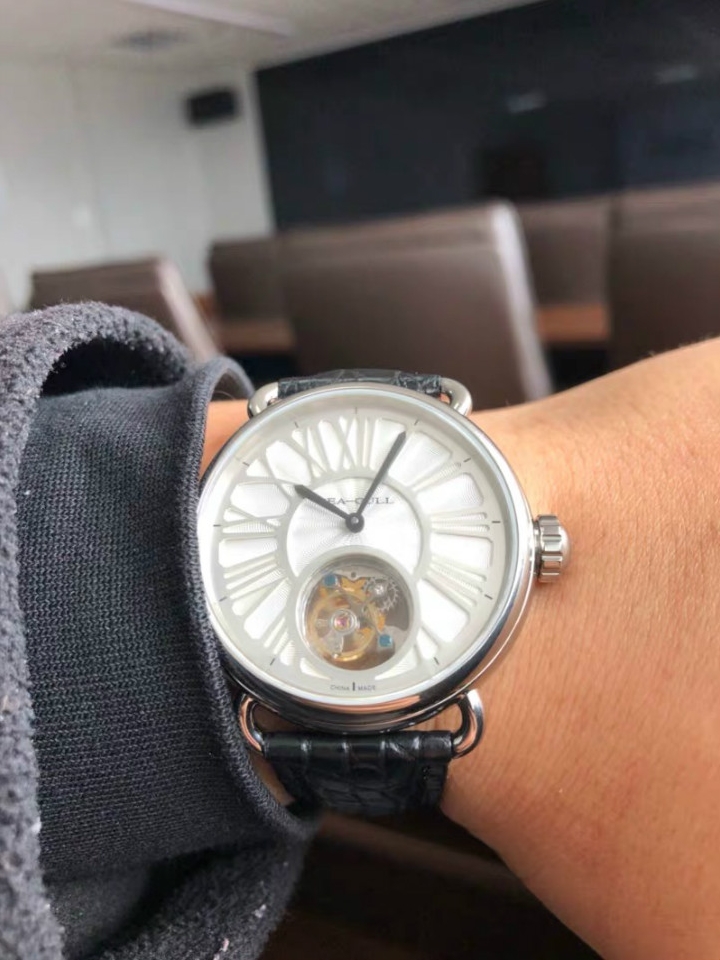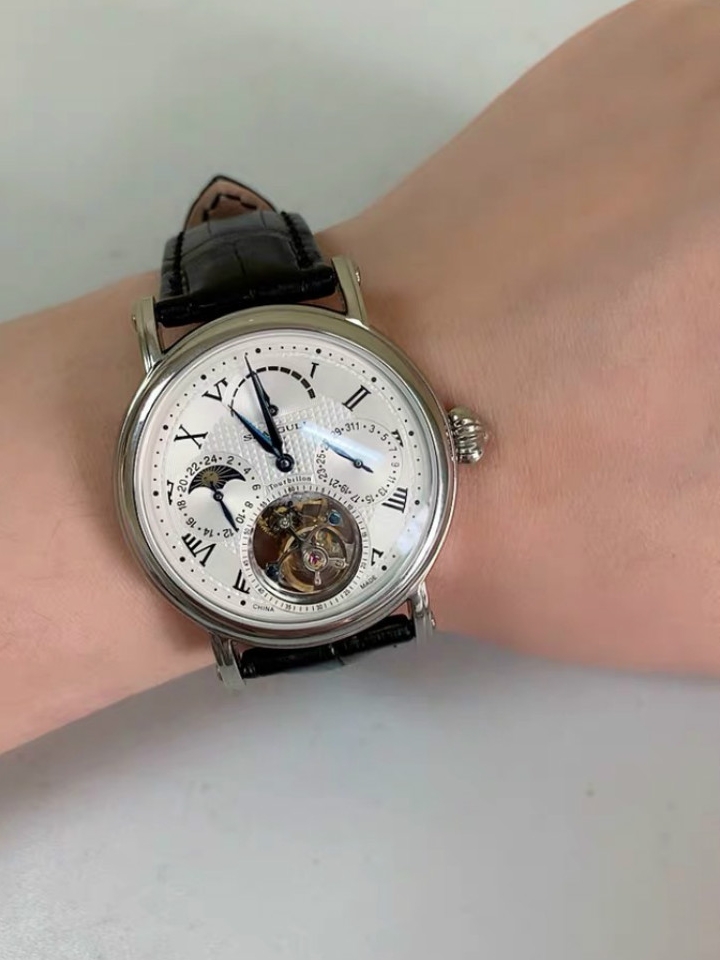 机械腕表一直都是很有商务休闲感的配饰。这款机械表在表现商务干练气质的同时,通过皮质的表带设计,让这款腕表佩戴起来更有年轻时髦感。