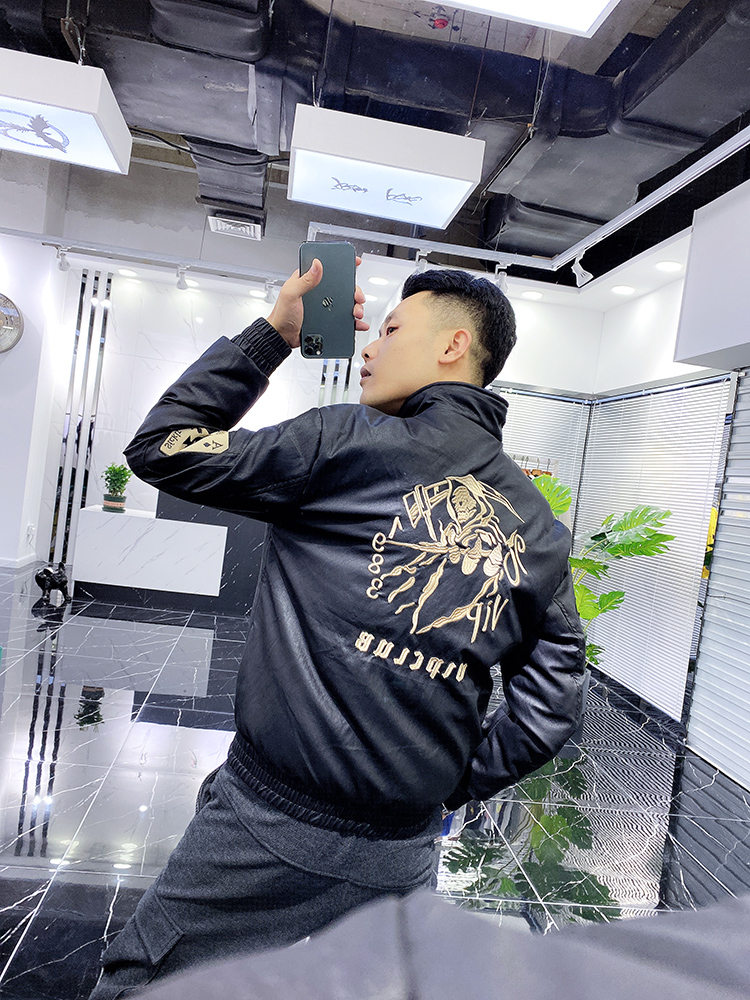 时尚的棒球服,简约的纯色设计,厚实的面料很保暖,采用纯棉面料,手感舒适柔软。背后是精致个性的刺绣,精致美观,显得时尚十足。