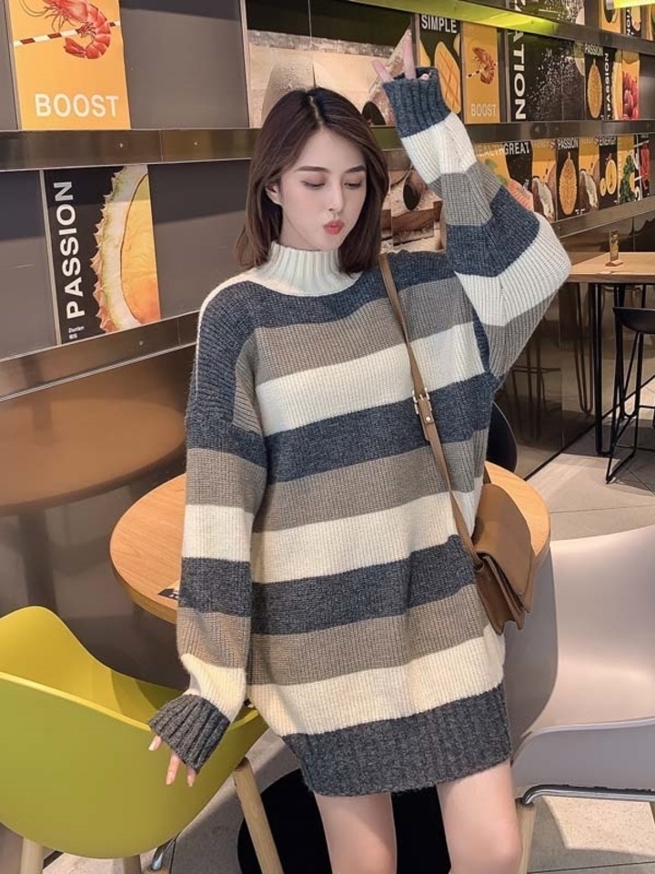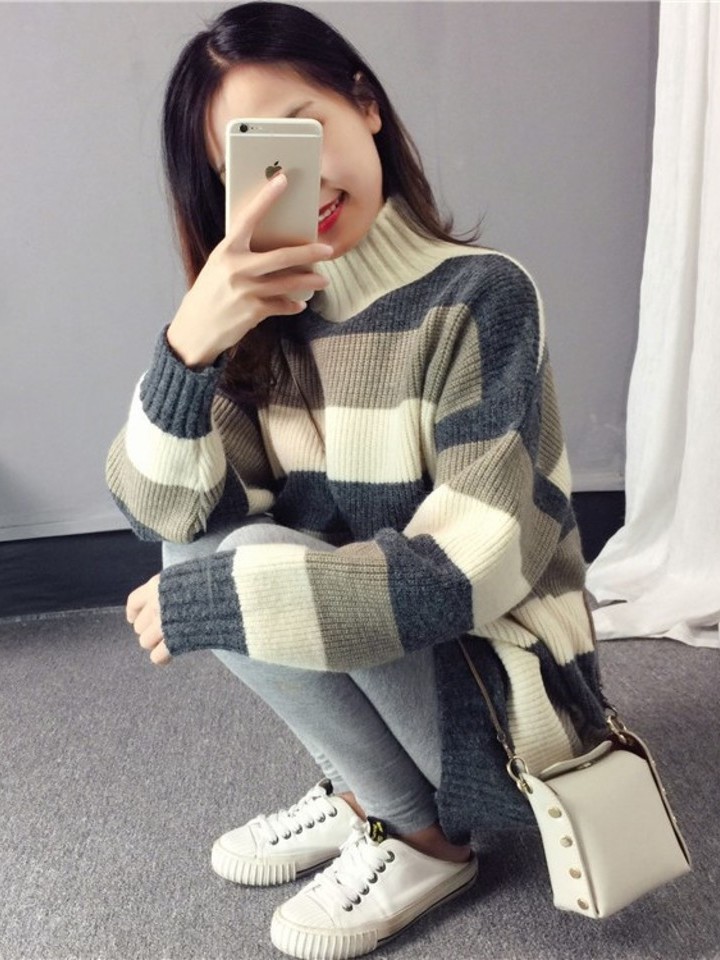 简约休闲的针织衫,带着港风的色彩,经典的条纹元素大胆而巧妙的将鲜艳的红玫瑰点缀其中,设计新颖富有活力,一眼看到都忘不了的混搭风格。
