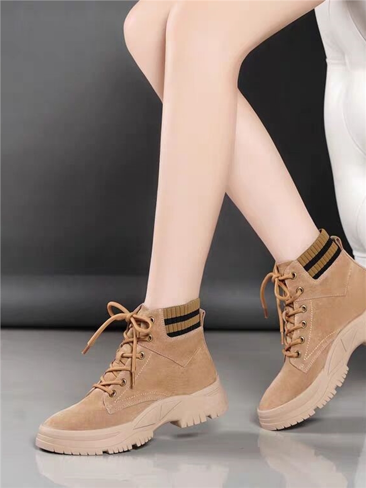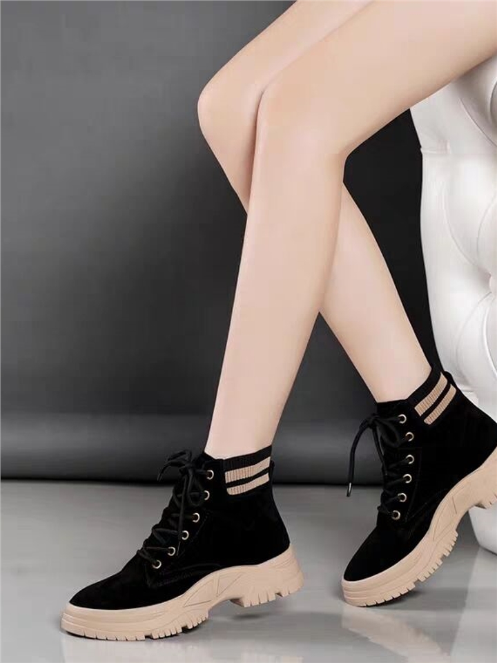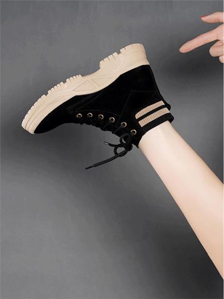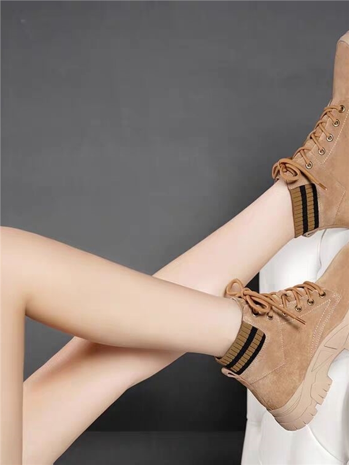 短靴款式,拉长腿部线条。皮革鞋带,穿着舒适透气。机车版型,穿着帅气有型。