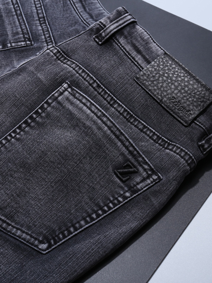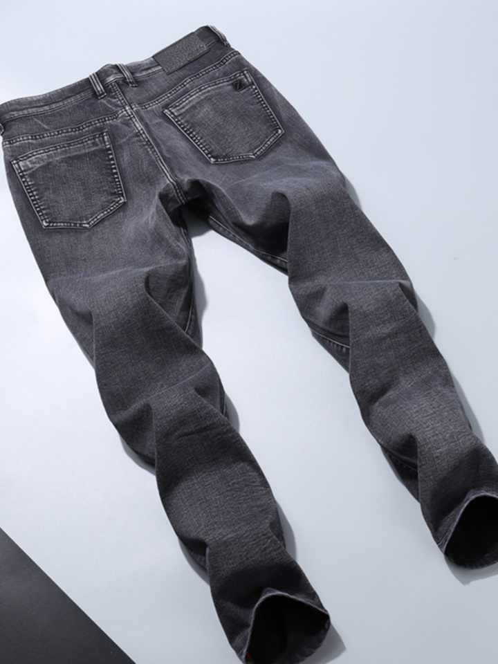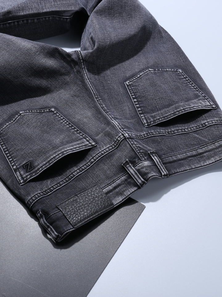 很百搭的灰色牛仔裤,精选棉弹牛仔布制作而成。棉弹牛仔布顾名思义就是主要成分是棉,加上比较有弹力的牛仔布,面料是加了莱卡所以有弹性,穿着感受比较随性舒适。