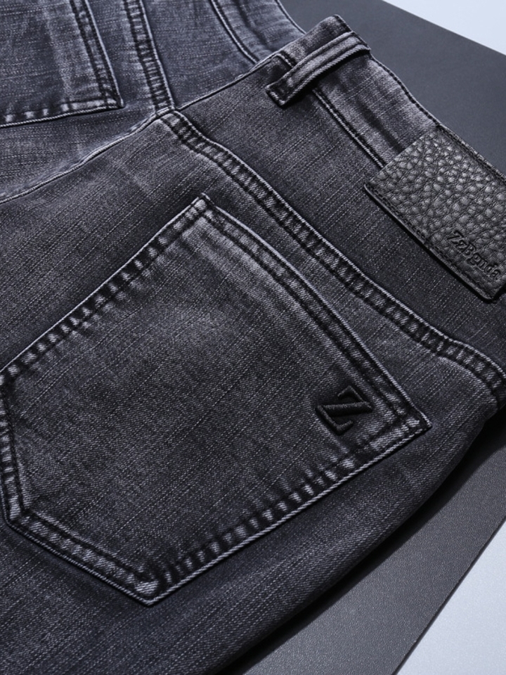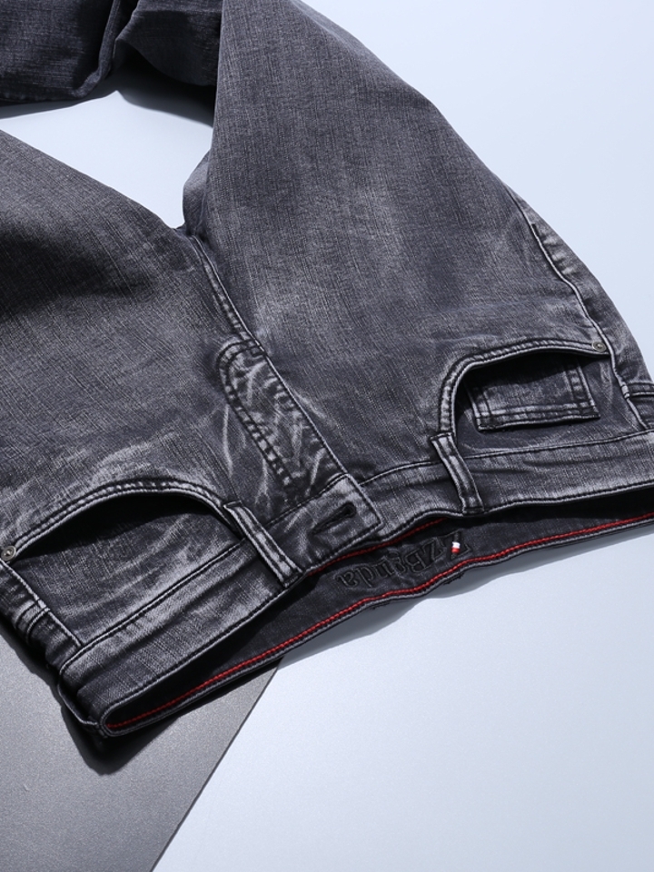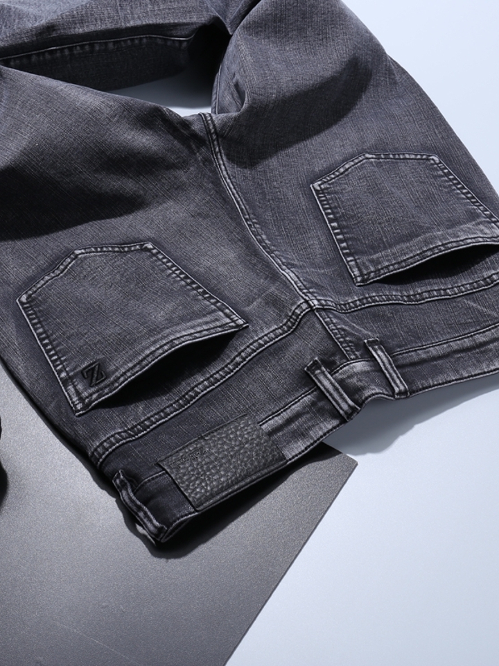 采用顺滑拉链结合袖口的裤头设计,让纽扣实用又美观,完美的诠释了细节彰显品质。直筒的版型很是修身,采用棉质的加厚牛仔布,弹性面料上身更舒适。
