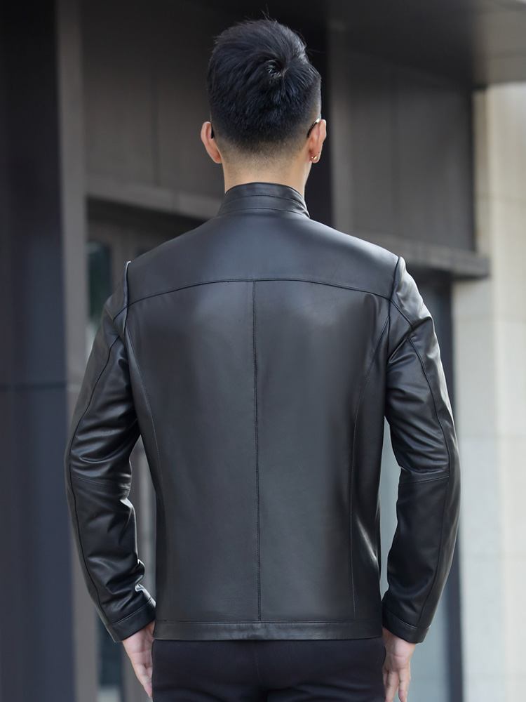极简的皮衣设计,出了拉链外不具任何装饰,简约了整体外表更具帅气度。
