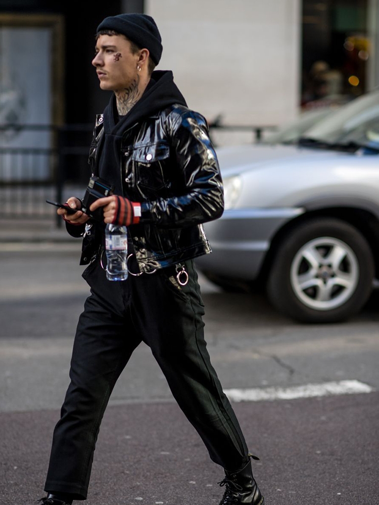 皮衣的版型在于修身,想要穿出笔挺的效果,内搭选择一定要利落修身的纯色T恤。
