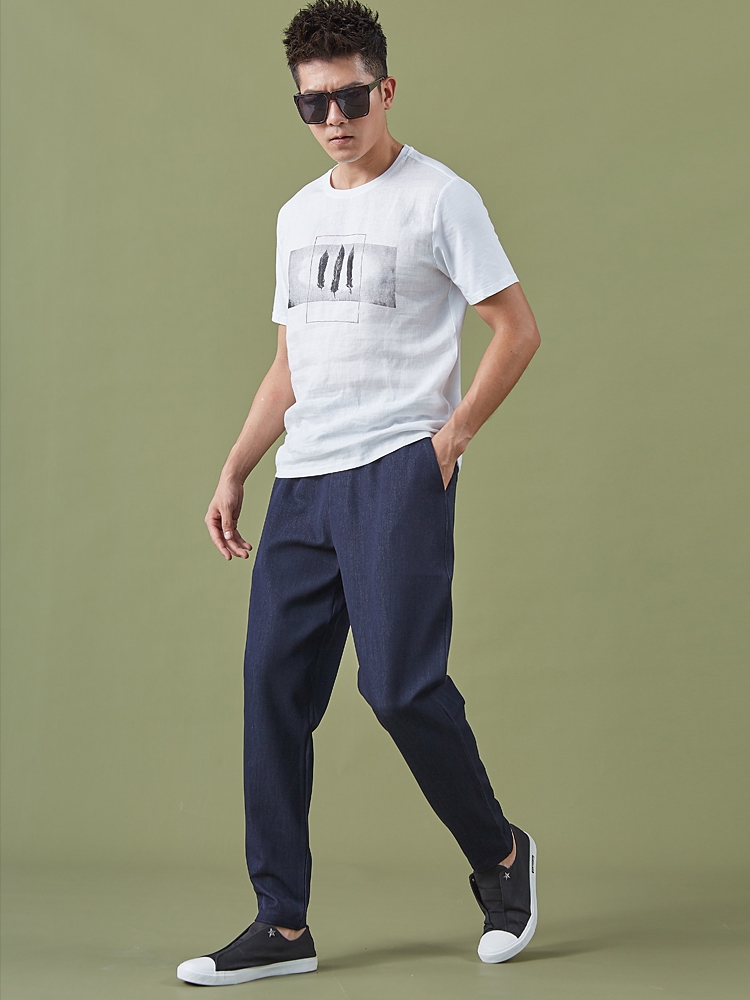 我觉得裤子无论如何搭配都能彰显利落简单的时尚气息,随自己喜欢去选择T恤和休闲鞋吧。