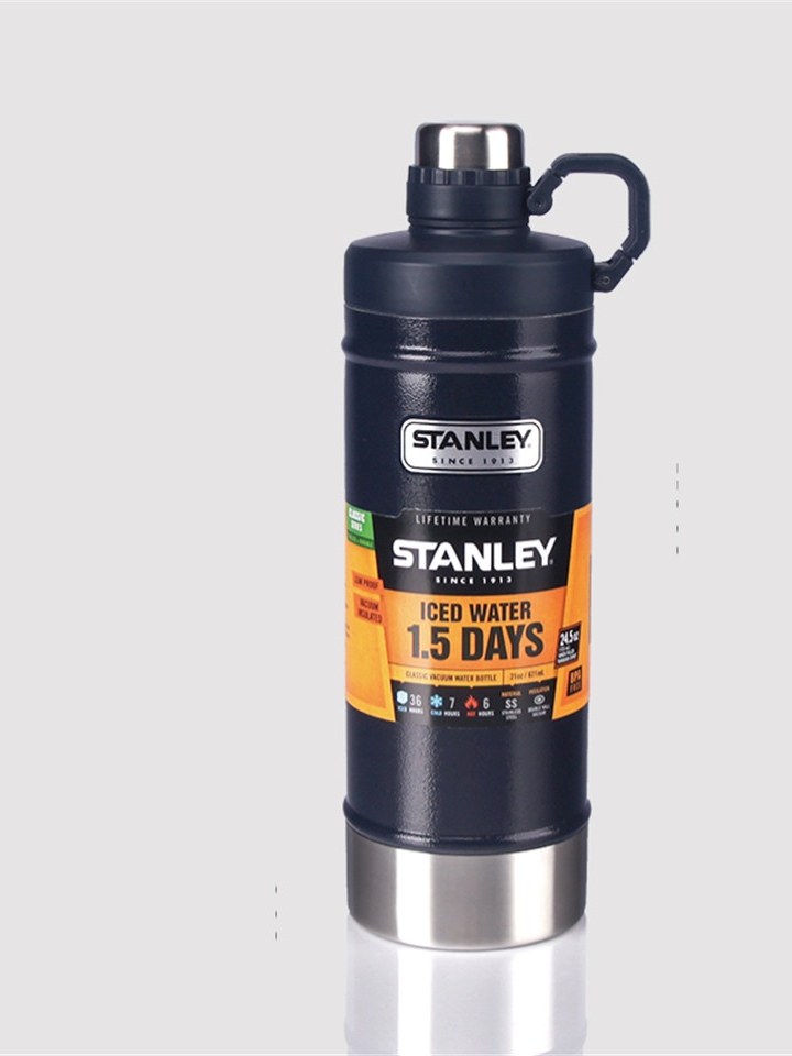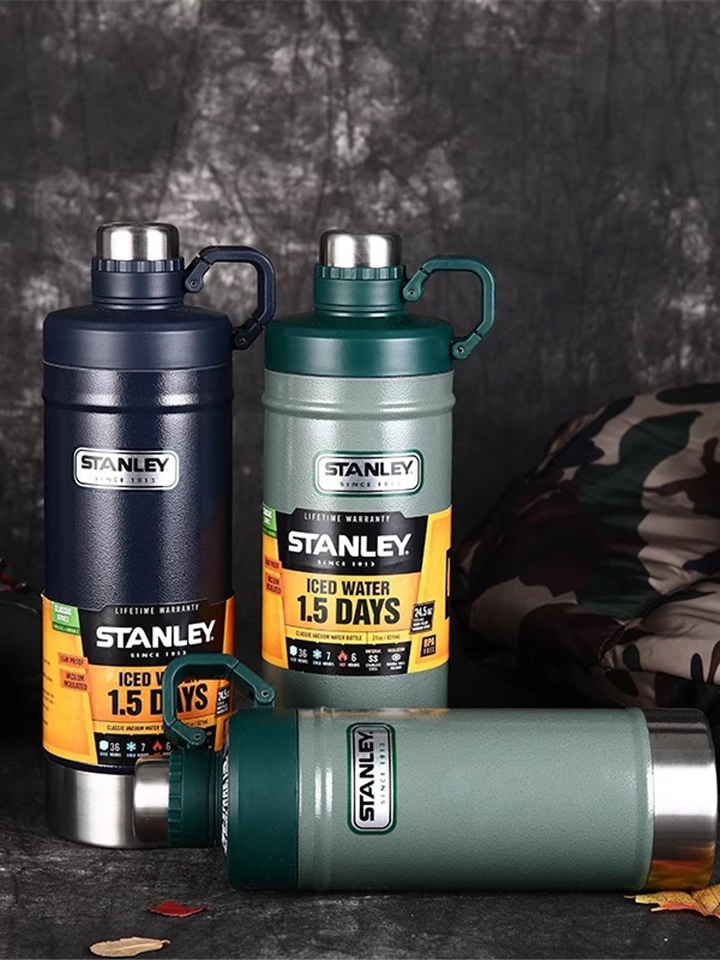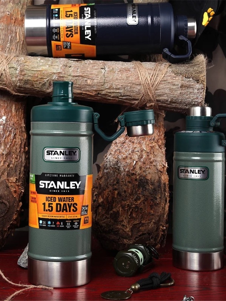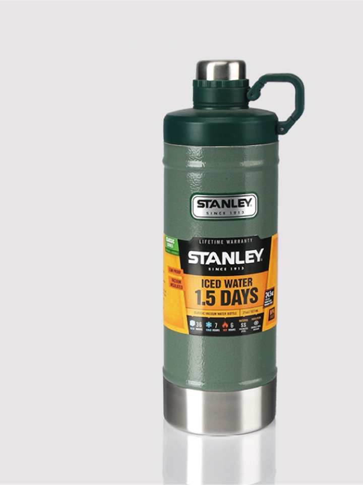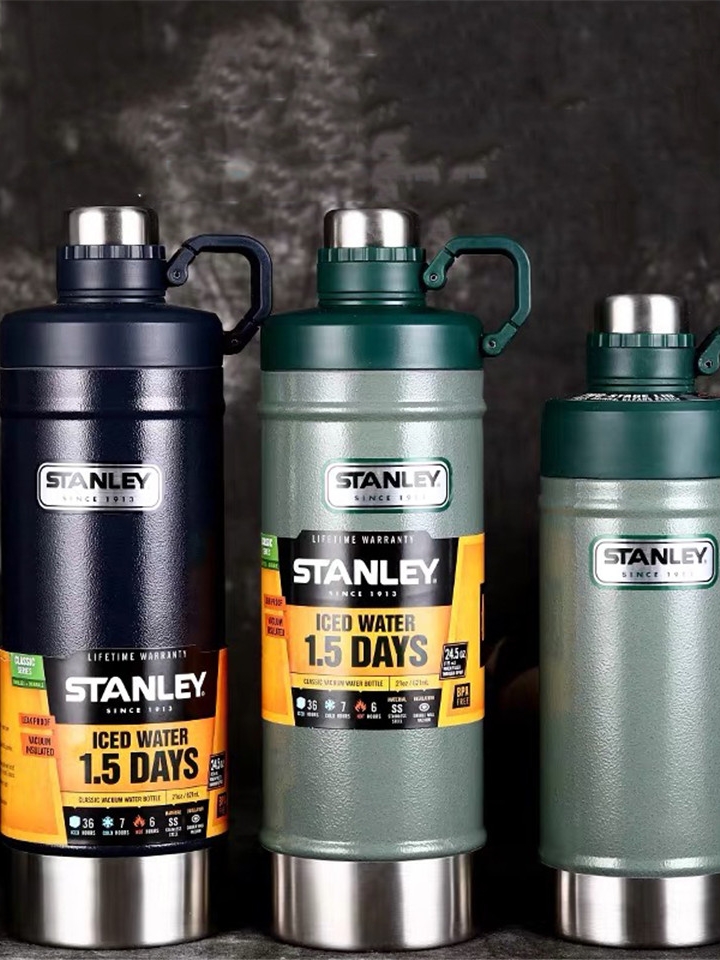 这款运动保温杯的杯身及把手均采用食品级PPn材质,健康环保,坚固耐用,柔韧性强,不易损坏,不锈钢壶底,结实耐用,耐摔耐撞击,还有史丹利标志