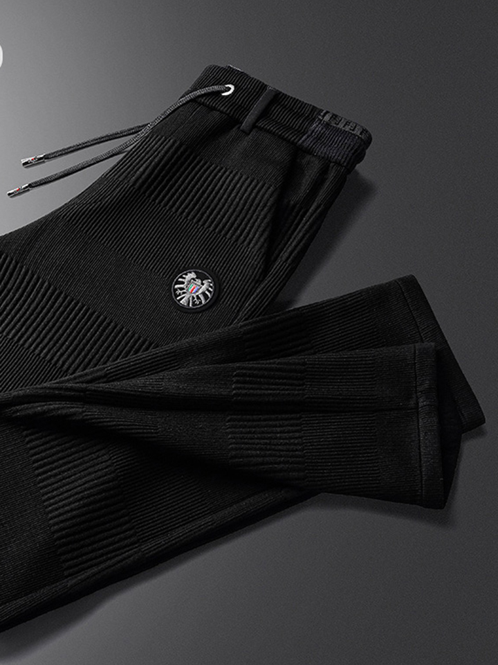 随性简约风的一款休闲裤,挺阔有型的精致面料,搭配阔腿束口的设计,自然垂坠,富有质感。