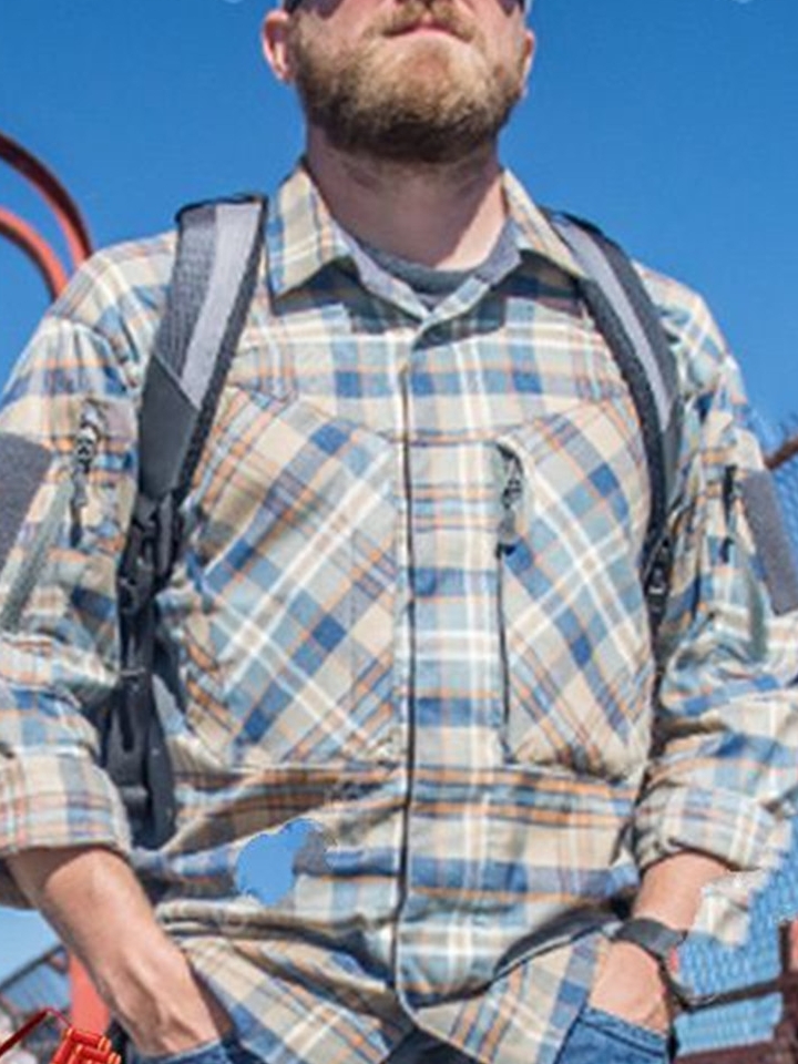格纹是一种经久不衰的时尚元素,此番运用格纹打造的这件翻领战术衬衣,会让你整个人看起来更加优雅,具有绅士风格,多个口袋的融入也非常方便。