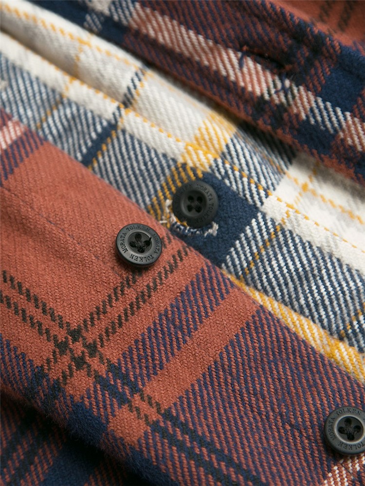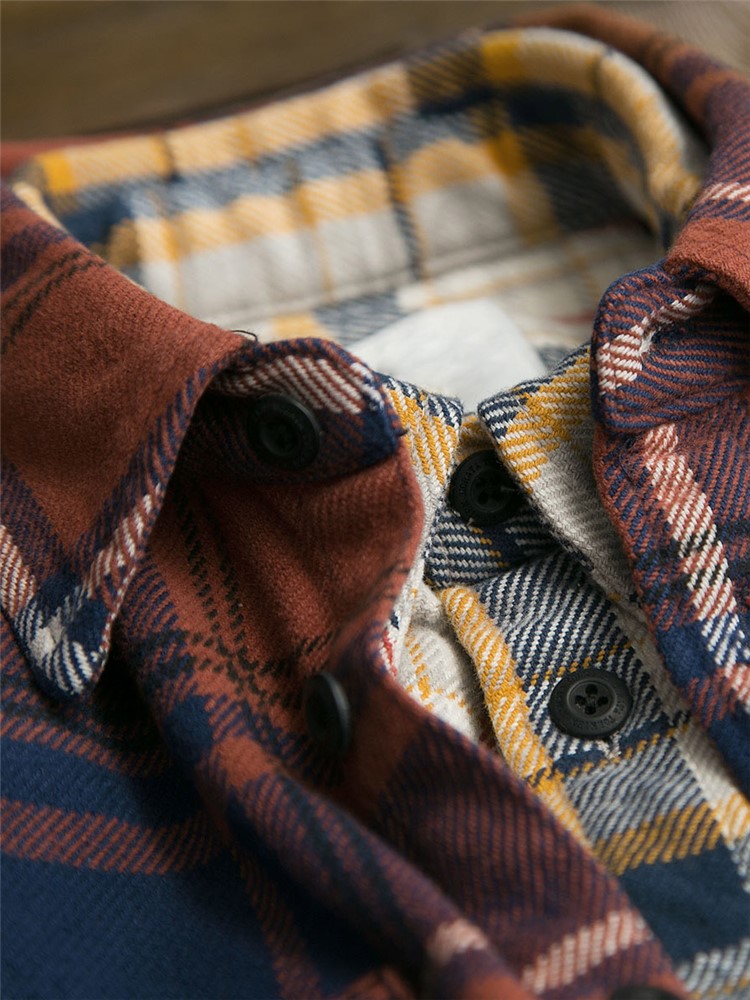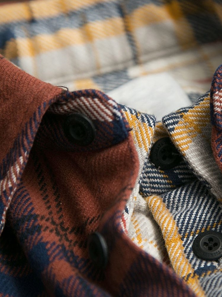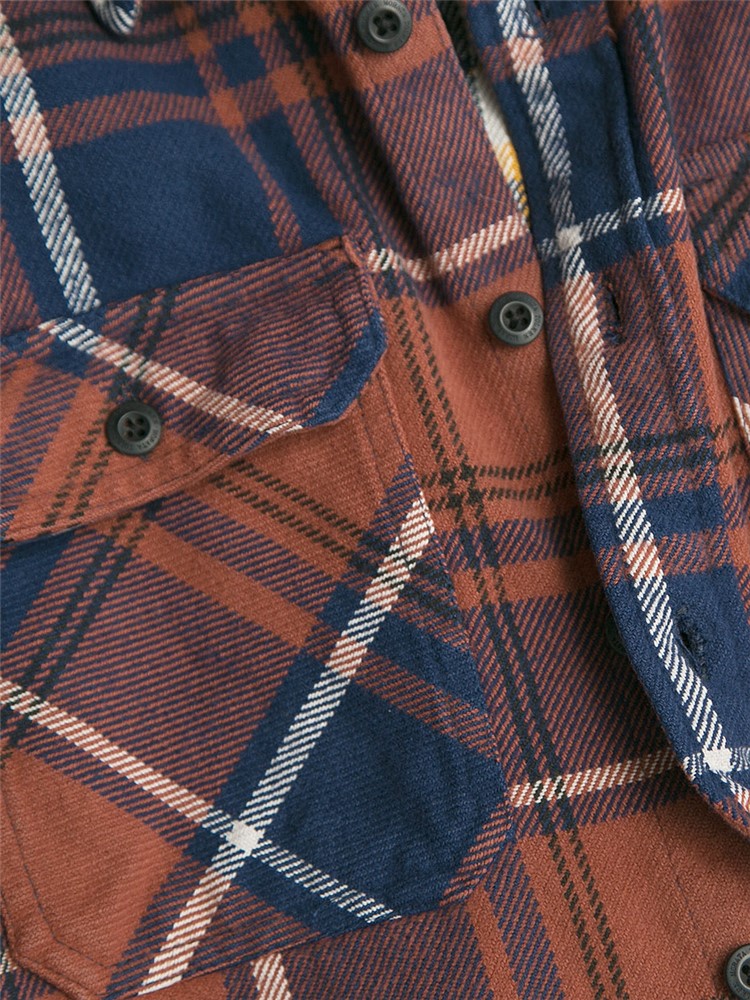 经典格子元素,复古时尚,加厚厚实,保暖效果极佳,翻领设计,凸显绅士气质,宽松长袖,修饰手臂曲线,大口袋设计,工装风十足,衬衫翻领,凸显干练气质,宽松版型,穿着舒适自在。